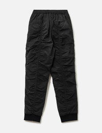- THUG CLUB - Scarred Double Flying Bio Pants - Made of regenerated nylon - Scarred and ruched details throughout - Elasticized waistband - Zipper detail at each leg - Two side pockets; two rear pockets - Cinched ankle - Color: Black - Country Of Origin: KR - Material: 100% Re-nylon - See more Pants and Clothing SIZING - Model wears size 2 - Model measures: Height 186cm, Chest 34”/86cm, Waist 28”/71cm, Hip 36”/91cm