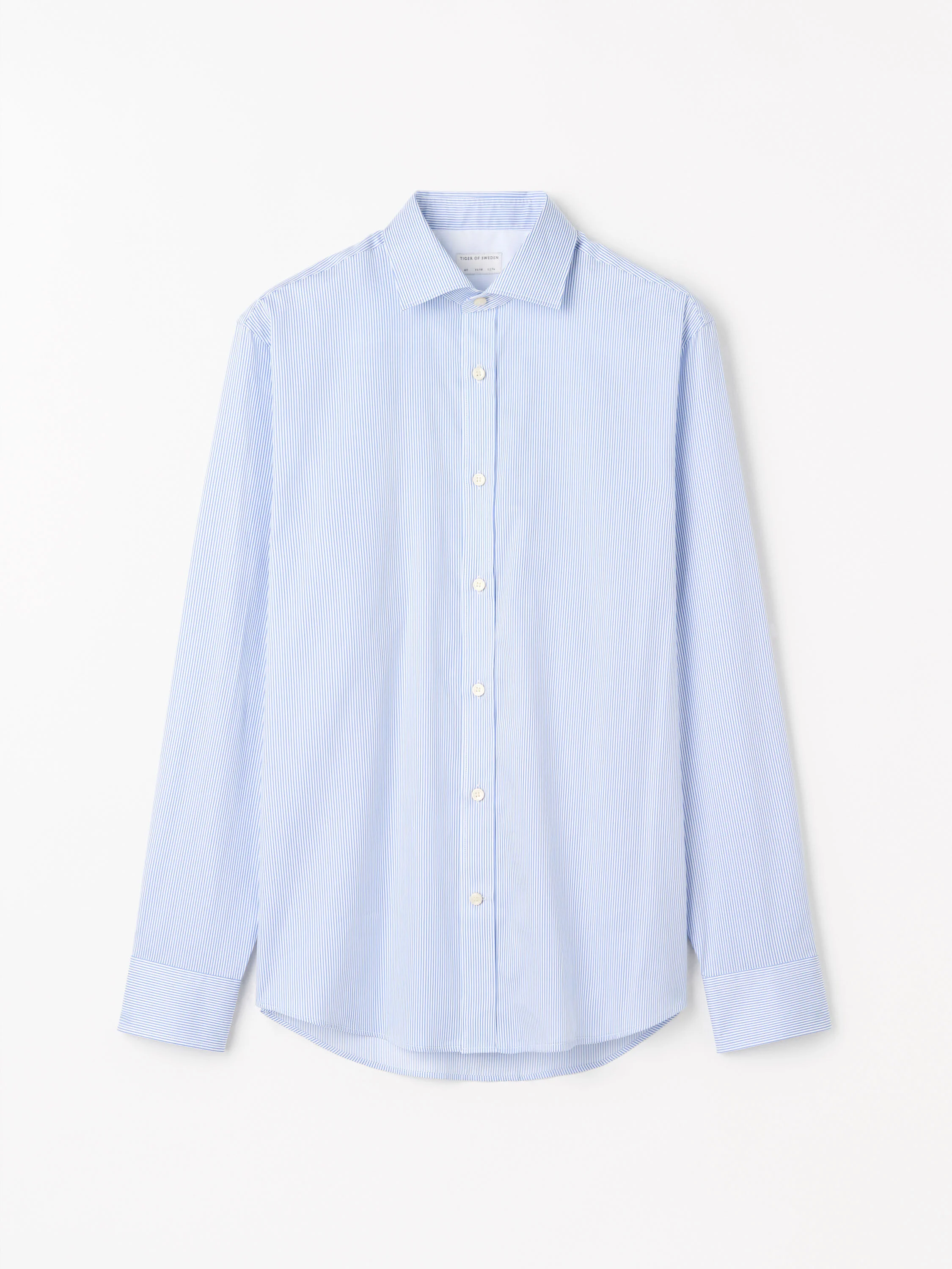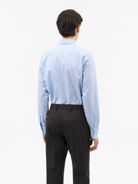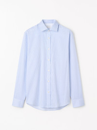 The Adley is a formal shirt crafted from a crisp cotton stripe fabric, offering a refined and timeless look. It features an exposed, classic shirt placket with traditional shirt buttons running along the front, cuffs, and sleeve plackets. The rounded cuffs are designed with double buttons for adjustable sizing, complemented by small pleats. At the back, a split double-layer yoke enhances fit and movement, while the curved hem gives the shirt a clean, tailored finish. Product Details - 100% Cotton - Formal shirt in a cotton stripe quality - Exposed, classic shirt placket - Rounded cuffs with double buttons for size adjustment - Small pleats at cuffs - Classic shirt buttons at placket, cuffs and sleeve plackets - Split double layer yoke at back - Centre back length: 79 cm - Curved hem - Made in China - Model is 185 cm and wearing a size 40 - For a complete look, wear it with Tenuta TrousersForma Shoes - Art No.112139208