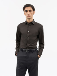 The Adley is a formal shirt crafted from a high-quality cotton twill structure. It features a French placket and square cuffs with double buttons for size adjustment, along with small pleats at the cuffs. The shirt is adorned with classic buttons at the French placket, cuffs, and sleeve plackets. It includes darts at the back and a split double-layer yoke for added detail. The centre back length measures 79 cm, and the shirt is finished with a curved hem. Product Details - 100% Cotton - Formal shirt in a cotton twill structure - French placket - Square cuffs with double buttons for size adjustment - Small pleats at cuffs - Classic shirt buttons at french placket, cuffs and sleeve plackets - Darts at back with split double layer yoke at back - Centre back length: 79 cm - Curved hem - Made in Vietnam - Model is 185 cm and wearing a size 48 - For a complete look, wear it with Tense A Trousers and Forma Shoes and Bergstrom Belt - Art No.11287303H