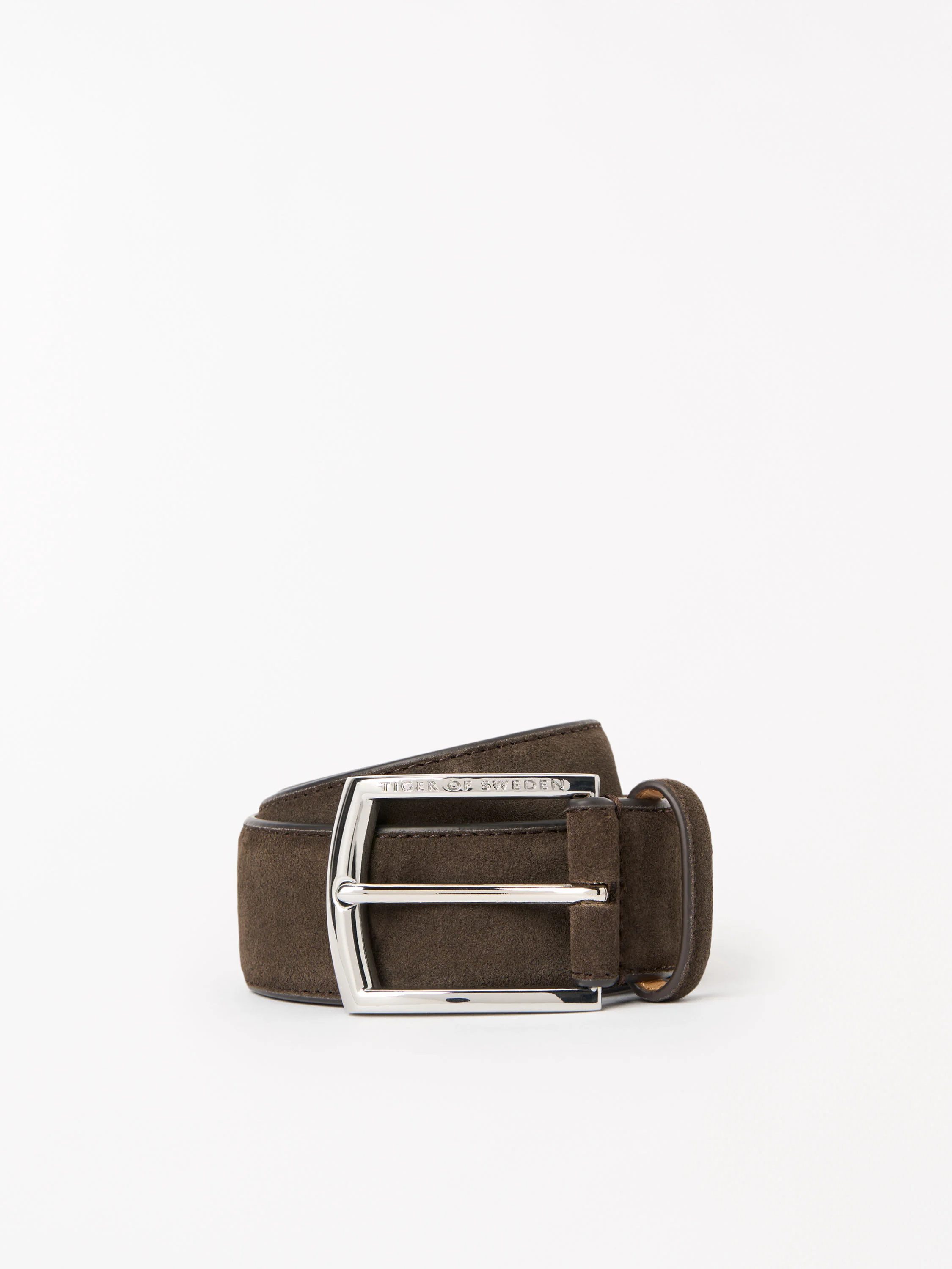 The Bergstroms belt is crafted from 100% cow leather suede, offering a rich texture and a refined, tactile finish. It features shiny silver trims that add a polished contrast to the soft suede, enhancing its sophisticated appeal. The buckle is subtly detailed with embossed branding. With a 35mm width, it strikes the perfect balance between functionality and style, making it versatile for both casual and more elevated looks. Product Details - 100% Cow Suede - 100% cow leather suede - Trims in shiny silver - Embossed branding on buckle - 35mm width - Made in Italy - Art No.11095310N
