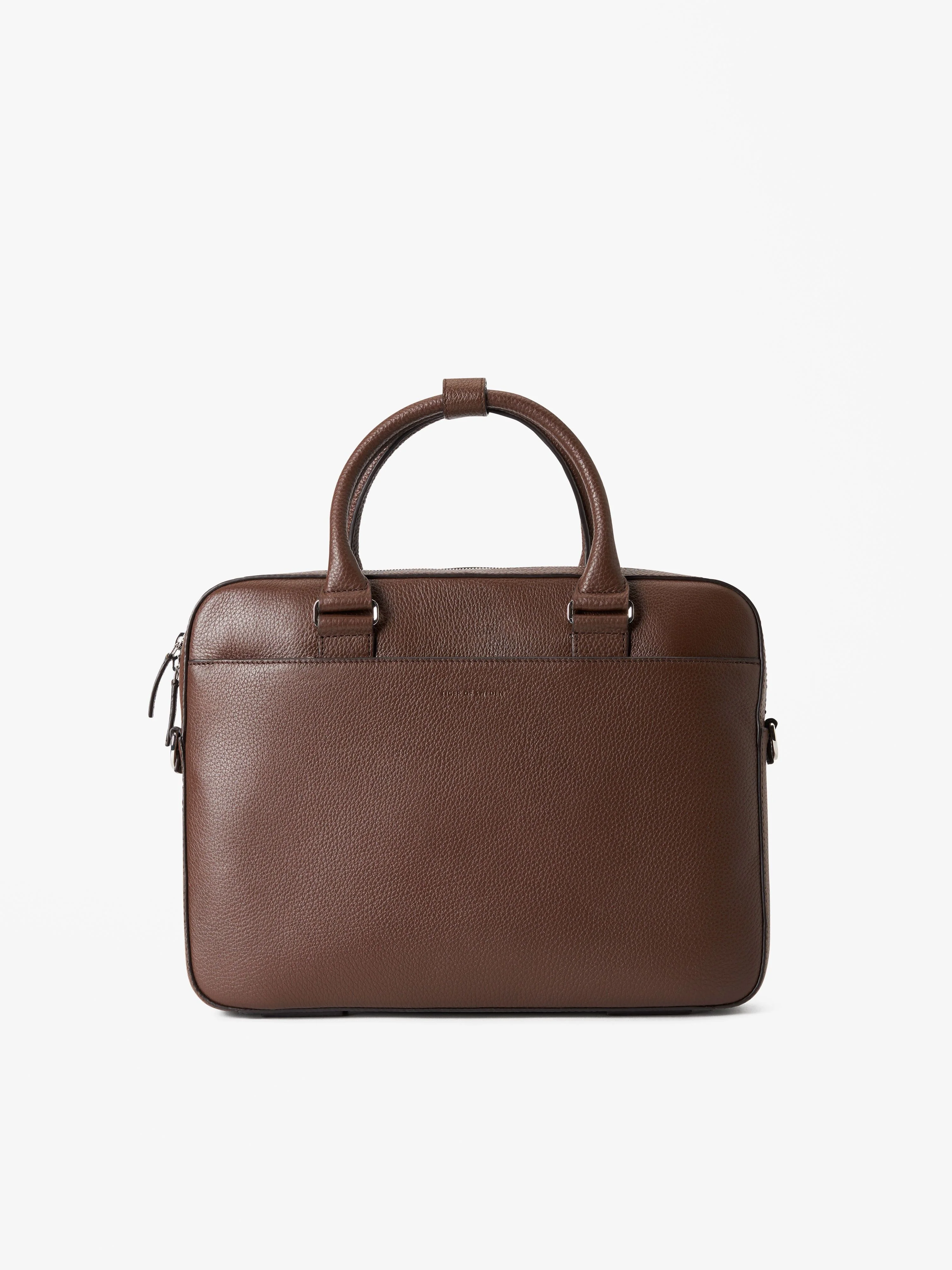 Product Details - 100% Calf Leather - Briefcase in soft grainy leather - One main zipped compartment - Concealed zipped pocket at the front - Inside features one zipped pocket and one open pocket - Detachable shoulder strap - Embossed Tiger of Sweden logo at front - Size: 28 x 38 x 5.5 cm - Fits a 15" laptop - Double Zip for easy access and durability - Made in India - Art No.10973512S