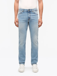 The Des jeans feature a mid-rise fit with comfort stretch for ease of movement and all-day wear. Designed with a straight leg silhouette, they showcase classic five-pocket styling, including a coin pocket, and are finished with triple stitching for durability. A branded patch adds a signature touch to this timeless, versatile design. Product Details - 99% Cotton, 1% Elastane - Mid-rise fit - Comfort stretch - Triple stitching, branded patch - 5 pocket, coin pocket - Straight leg - inseam measures 32" = 80 cm in 32/34 - Town wash - Made in Tunisia - Model is 186 cm and wearing a size 30 - For a complete look, wear it with Travis RWS Pullover and Sampe Shoe and Bergstrom Belt - Art No.11400421F