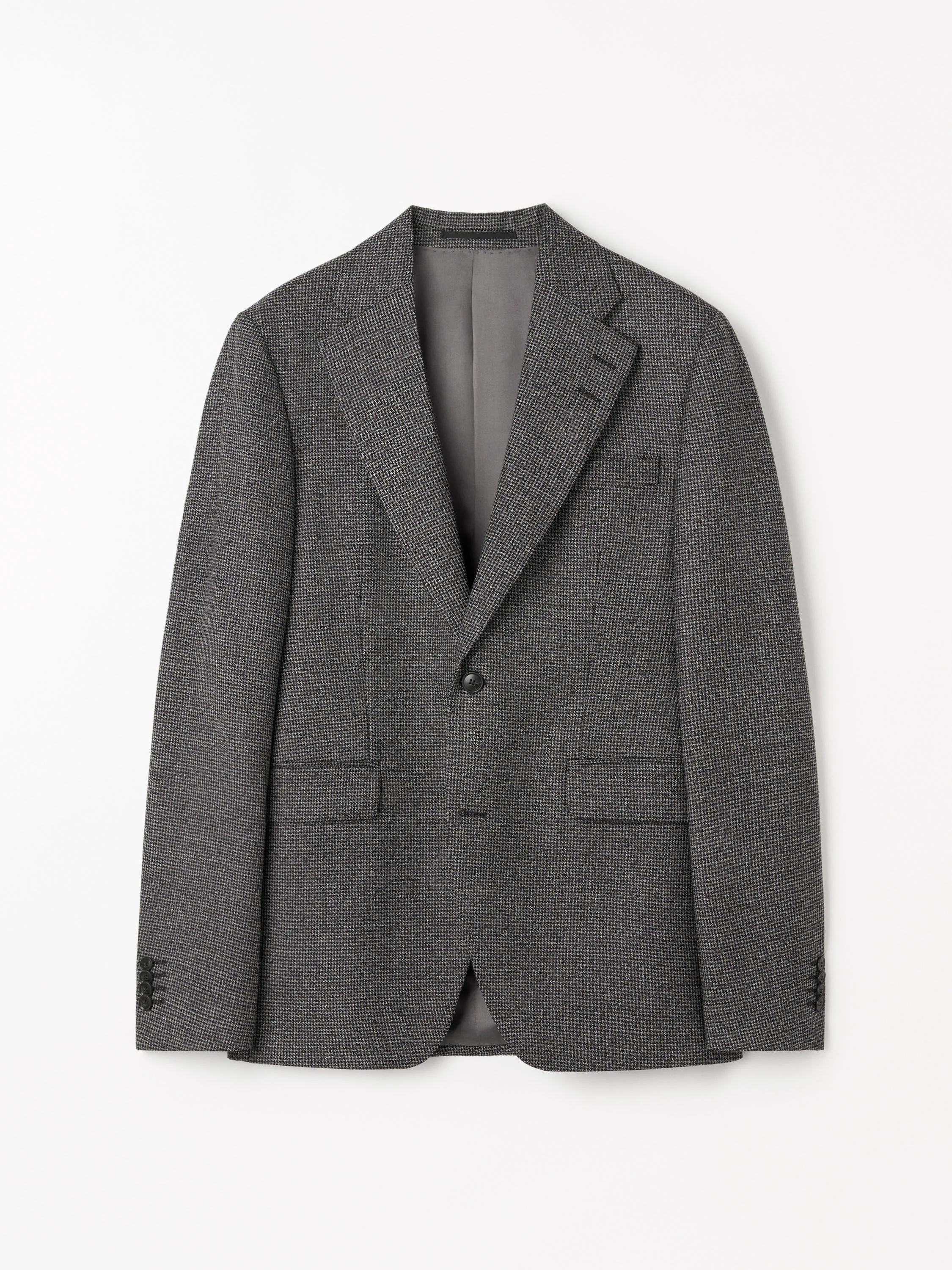 As the name implies, the Ease jacket offers a super comfortable and easy way to wear a sharp suit look in 100% wool. The shoulder is our softest ever, and the notch lapel is slightly wider, adding an edge to this elegant design. It is fully lined, features kissing buttons, and has double back vents. Product Details - 100% Wool - Comfortable and easy silhouette - Soft shoulder construction - 100% wool - Slightly wider notch lapel - Fully lined - Features kissing buttons - Double back vents - Made in Romania - Model is 188 cm and wearing a size 48 - For a complete look, wear it with Spenser Shirt and Tommie Trousers and Forma Shoes and Septa Tie - Art No.113570050