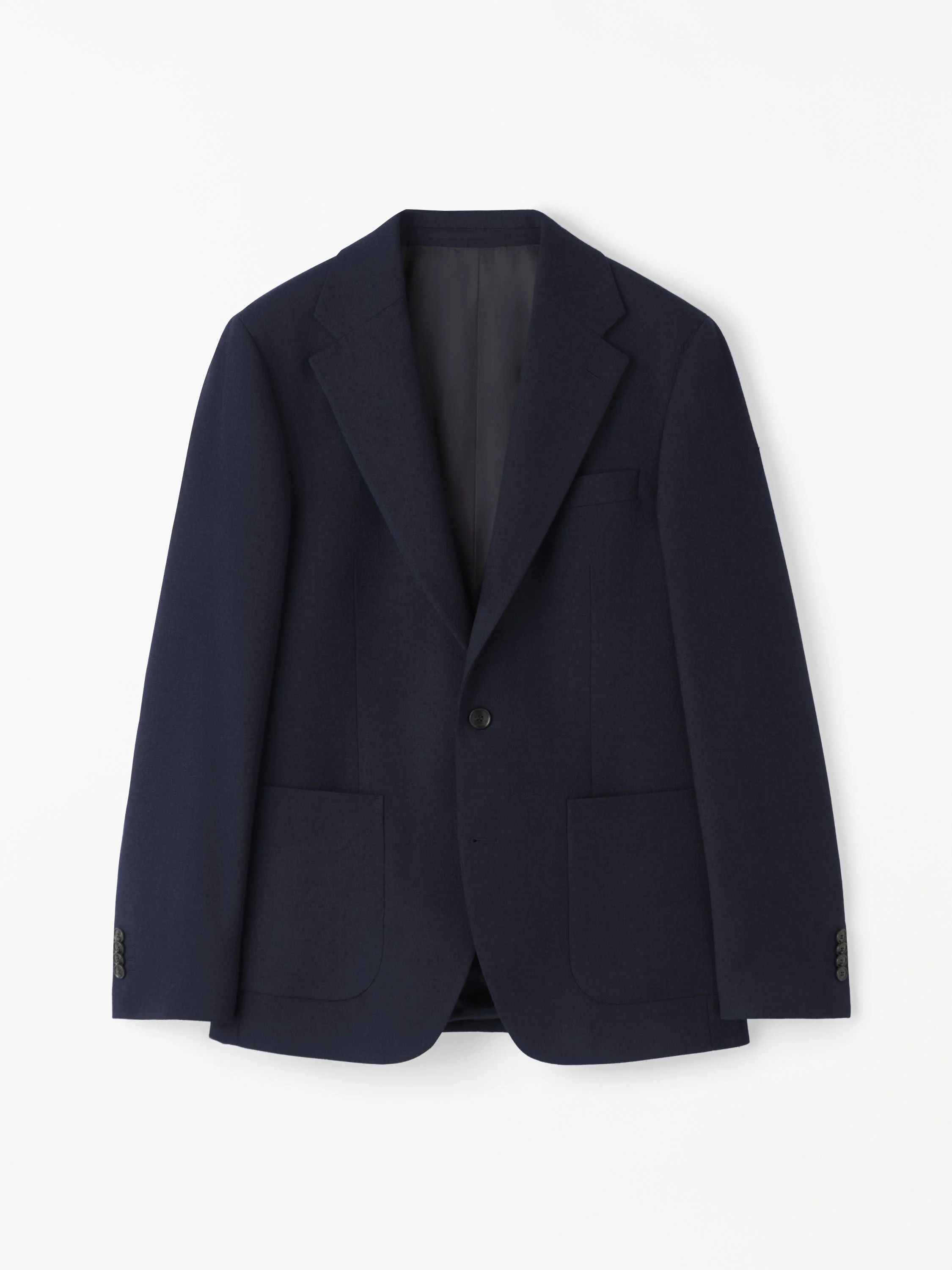 Easer is a close companion to the Ease jacket —slightly shorter in length, making it perfect for wearing as a standalone blazer. It shares the same soft shoulder construction and effortless tailoring but adds its own character with a rolling three-button front, patch pockets, chest and inside jet pockets, and kissing buttons at the cuff. Product Details - 60% Polyester, 39% Wool, 1% Elastane - Slightly shorter in length than the Ease jacket - Comfortable and easy silhouette - Soft shoulder construction - Slightly wider notch lapel - Fully lined - Rolling three-button front - Features kissing buttons at the cuff - Patch pockets and inside jet pockets - Double back vents - Full suit purchases include a complimentary suit bag - Made in Romania - Art No.1143762T6