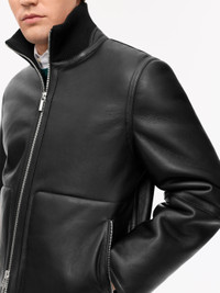 A shearling jacket with a luxurious feel, featuring leather binding along the seams for a refined touch. Designed with a high rib collar and a leather collar stand for a tailored finish, it includes zip pockets lined in shearling and detailed with custom cylinder logo zip pullers, combining craftsmanship with understated sophistication. Leather Working Group Certified Shearling Jacket. Product Details - 100% Lamb Leather - Leather Shearling Jacket - Leather binding along seams - High-rib collar and leather collar stand - Logo Pullers in matte silver - Zip pockets - Fully lined - Made in Turkey - Model is 186 cm and wearing a size M - For a complete look, wear it with Connor RWS Sweater and Tenuta RWS Trousers - Art No.113778050
