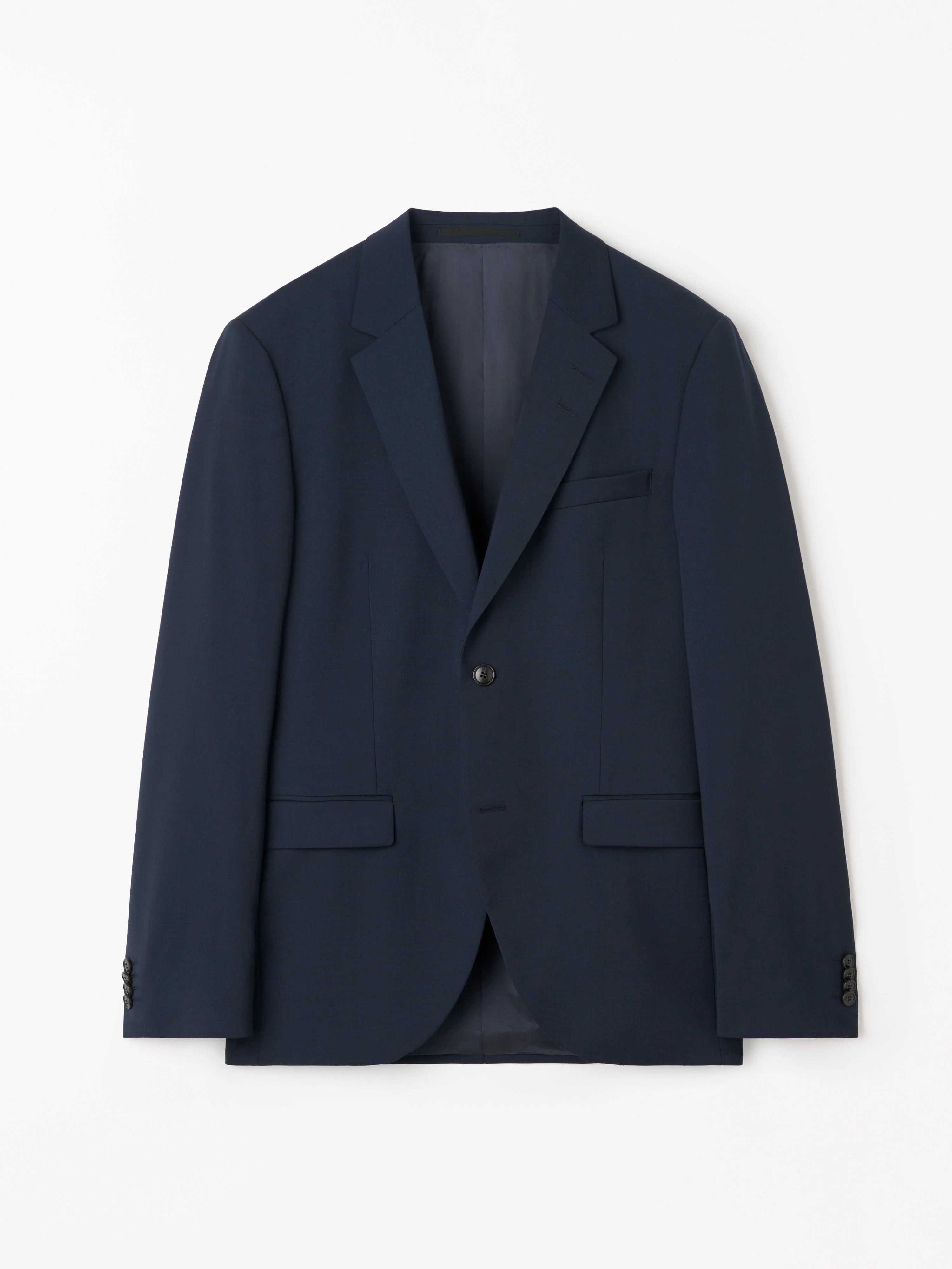Product Details - 54% Polyester Recycled, 44% Wool, 2% Elastane - Slim Fit - Suit jacket in stretch wool polyester blend - Slightly wider notch lapel - Two-button closure - Straight jetted pockets - Single welt pocket at chest - Side vents at back - Fully lined - Made in Bulgaria - Art No.11017225D