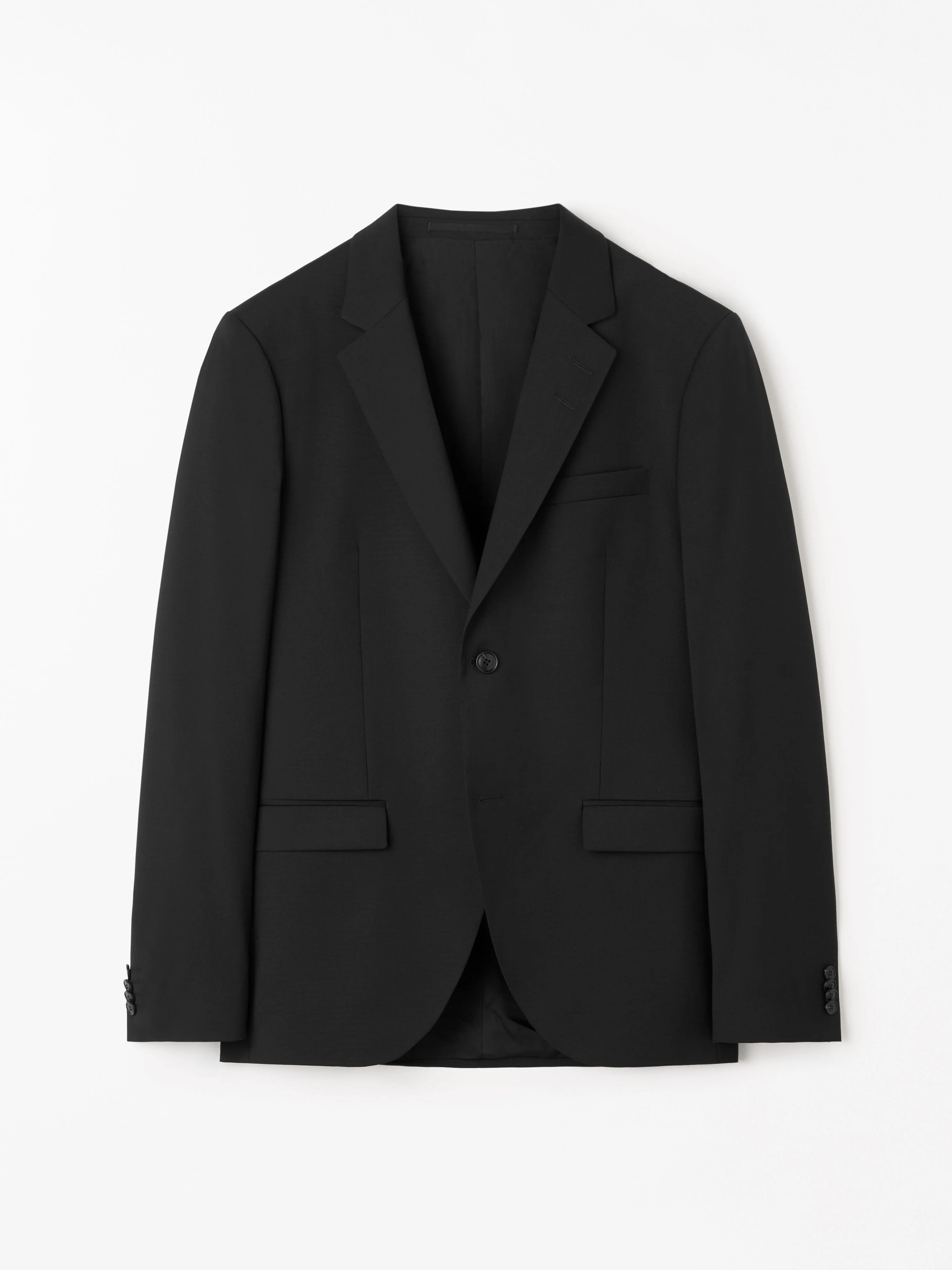 Product Details - 54% Polyester Recycled, 44% Wool, 2% Elastane - Slim Fit - Suit jacket in stretch wool polyester blend - Slightly wider notch lapel - Two-button closure - Straight jetted pockets - Single welt pocket at chest - Side vents at back - Fully lined - Made in Bulgaria - Art No.110172050