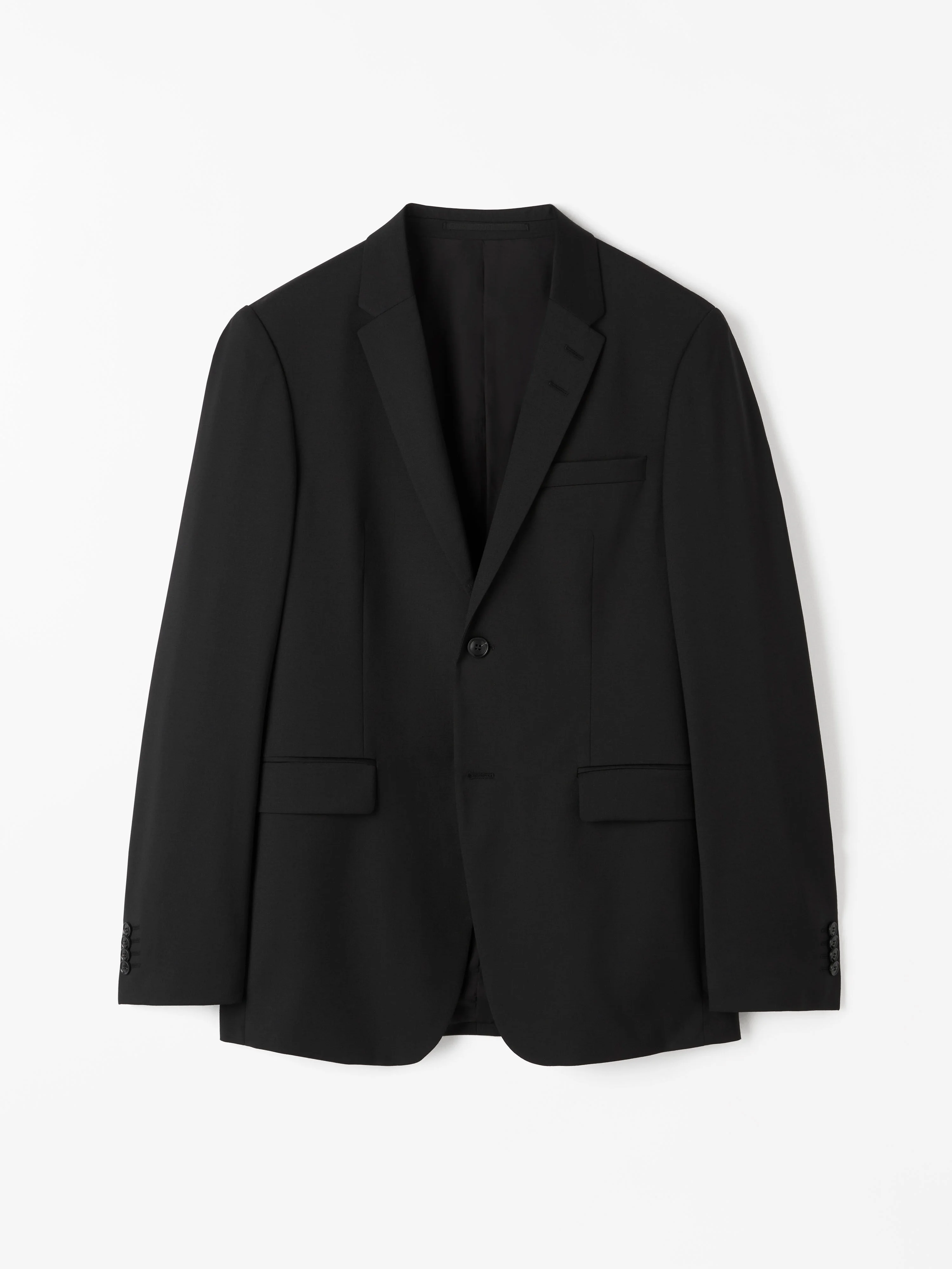 Product Details - 54% Polyester Recycled, 44% Wool, 2% Elastane - Slim Fit - Suit jacket in recycled polyester-wool blend with plain weave - Two-button closure - Slightly higher waist and pockets - Wider back for more movement - Soft shoulder construction - Straight jetted pockets - Single welt pocket at chest - Fully lined - Model is 189 cm and wearing a size 48 - Art No.109551050