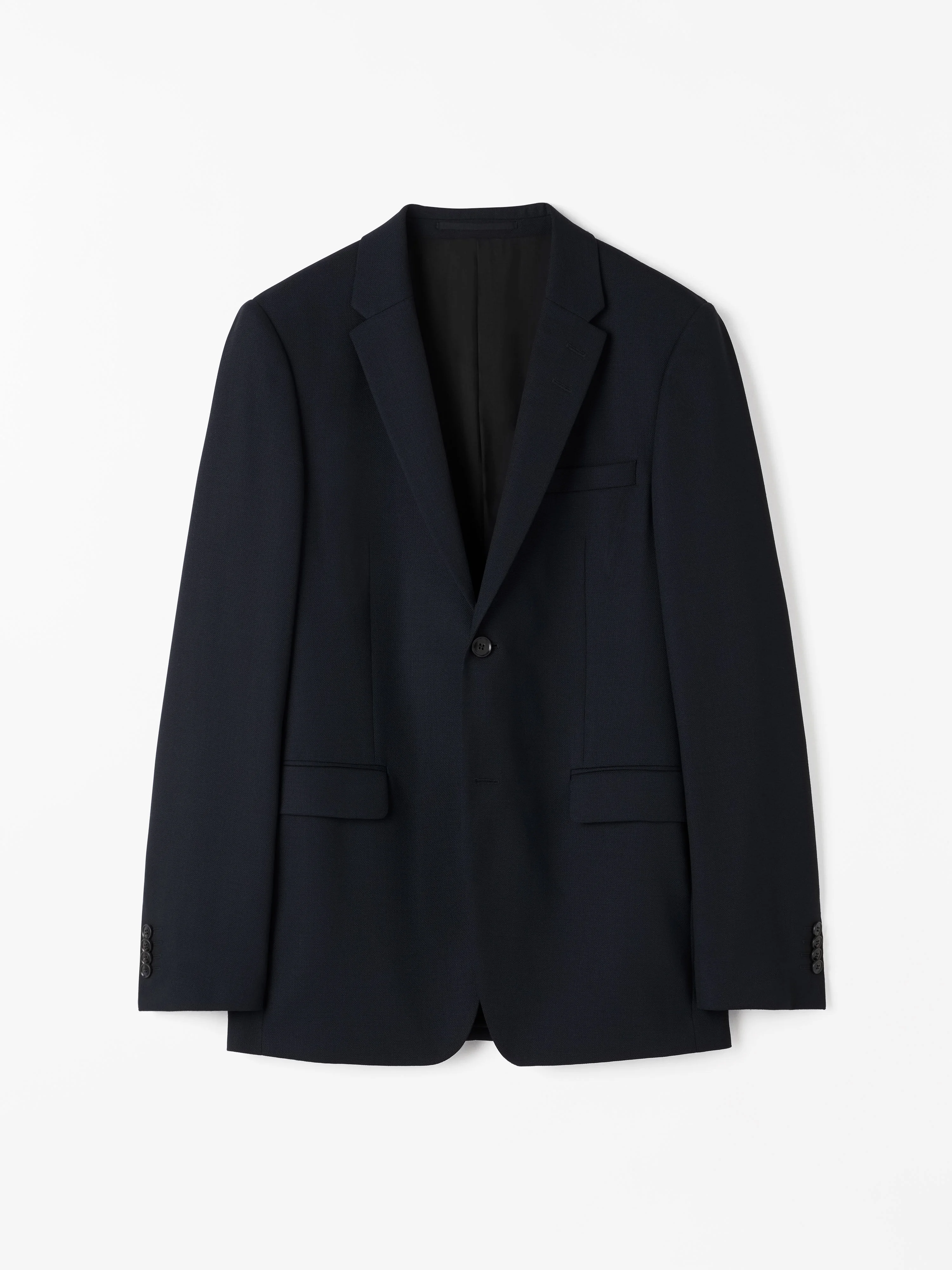 Product Details - 54% Polyester, 44% Wool, 2% Elastane - Slim Fit - Slim-fit suit jacket in wool blend with hopsack weave - Two-button closure - Slightly higher waist and pockets - Wider back for more movement - Soft shoulder construction - Straight jetted pockets - Single welt pocket at chest - Fully lined - Made in Portugal - Model is 188 cm and wearing a size 48 - Art No.10957109C