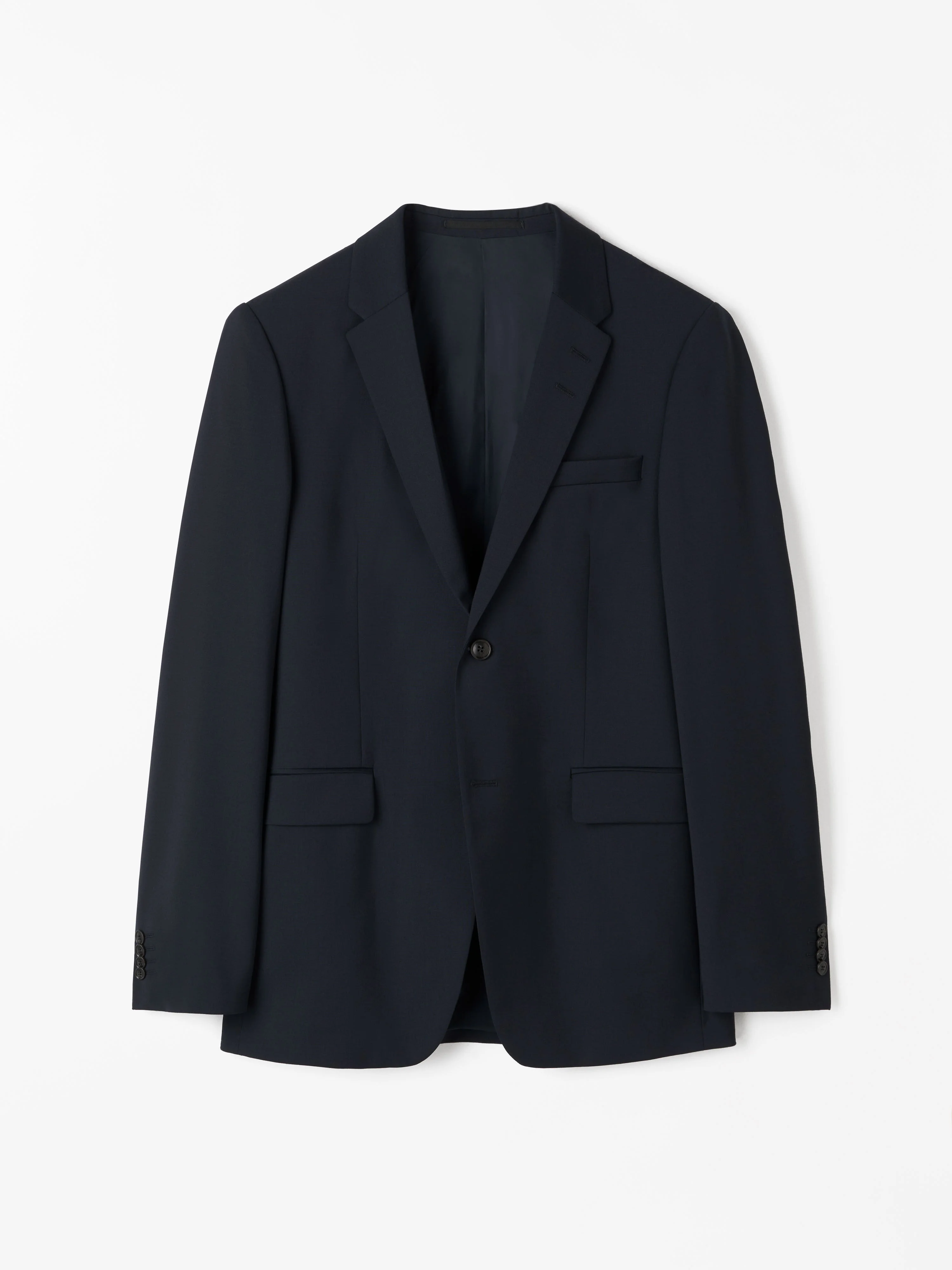 Product Details - 54% Polyester Recycled, 44% Wool, 2% Elastane - Slim Fit - Suit jacket in recycled polyester-wool blend with plain weave - Two-button closure - Slightly higher waist and pockets - Wider back for more movement - Soft shoulder construction - Straight jetted pockets - Single welt pocket at chest - Fully lined - Model is 189 cm and wearing a size 48 - Art No.10955109C
