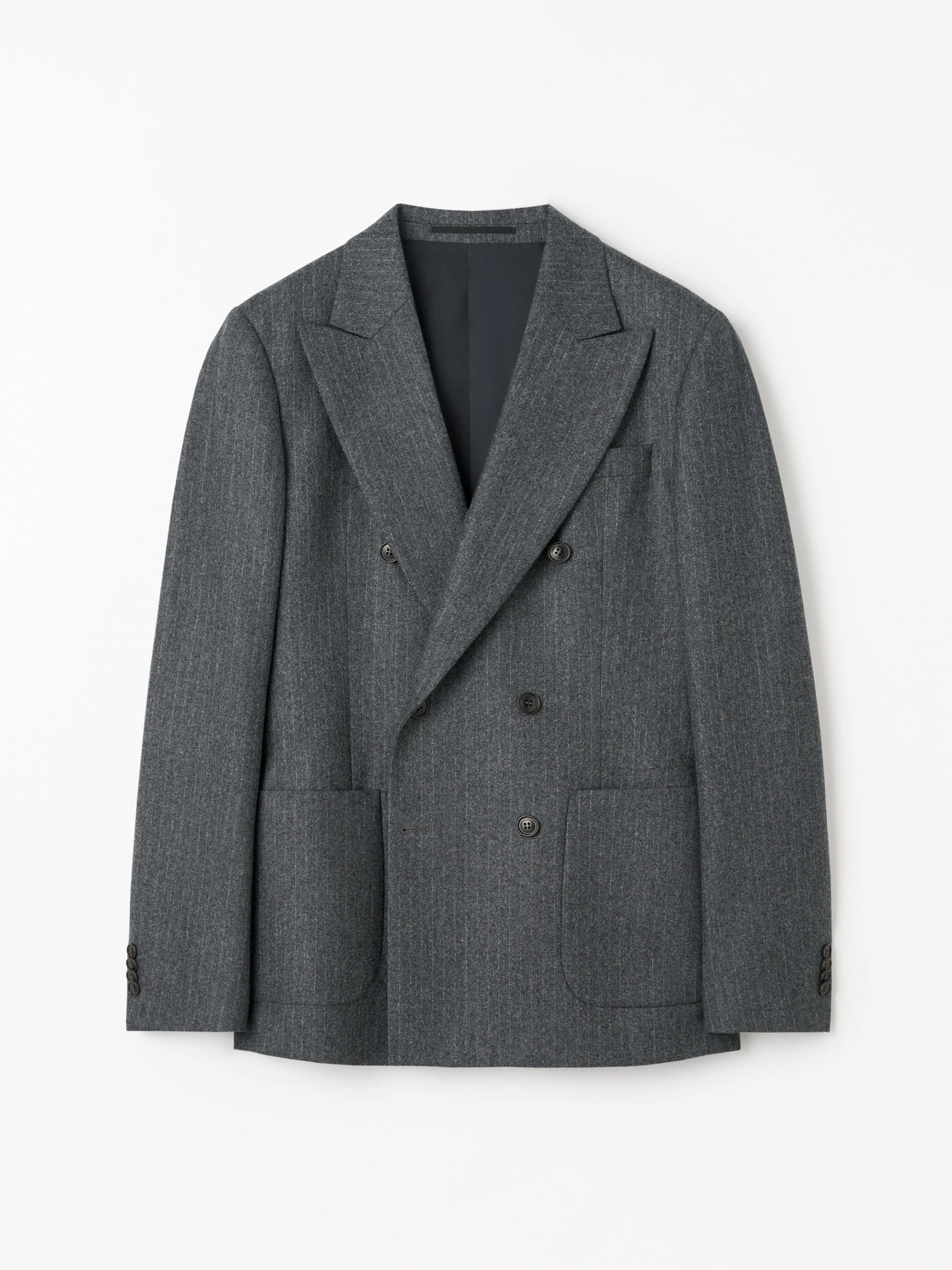 The Joachim is a regular fit double-breasted jacket made from 100% wool. It features an elegant, regular fit with sharp shoulders, kissing buttons at the cuffs, patch pockets, and interior jet pockets. Additionally, it has two side vents at the back. Product Details - 100% Wool - Regular Fit jacket - Double-breasted design in 100% pinstripe wool - Elegant, regular fit with sharp shoulders - Kissing buttons at cuffs - Patch pockets and interior jet pockets - Two side vents at back - Made in Romania - For a complete look, wear it with Tommie Trousers - Art No.113565003