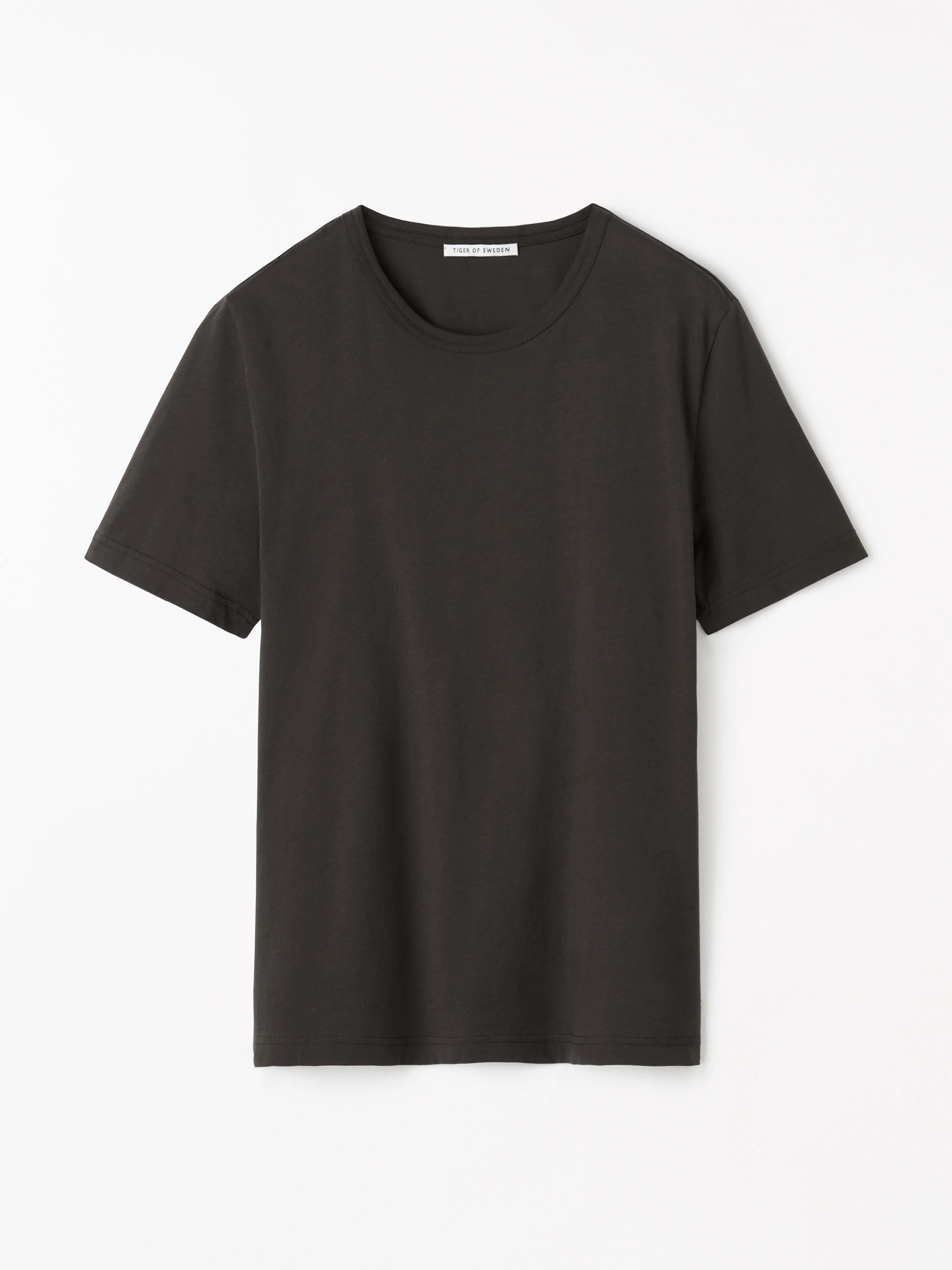Olaf is our core slim fitted T-shirt this season introduced with logo embroidery in a 185g single jersey. Product Details - 100% Cotton - Shortsleeved t-shirt - Crew neck - Hip lenght fit - Tiger of Sweden logo at chest - Made in Turkey - Art No.11369103H