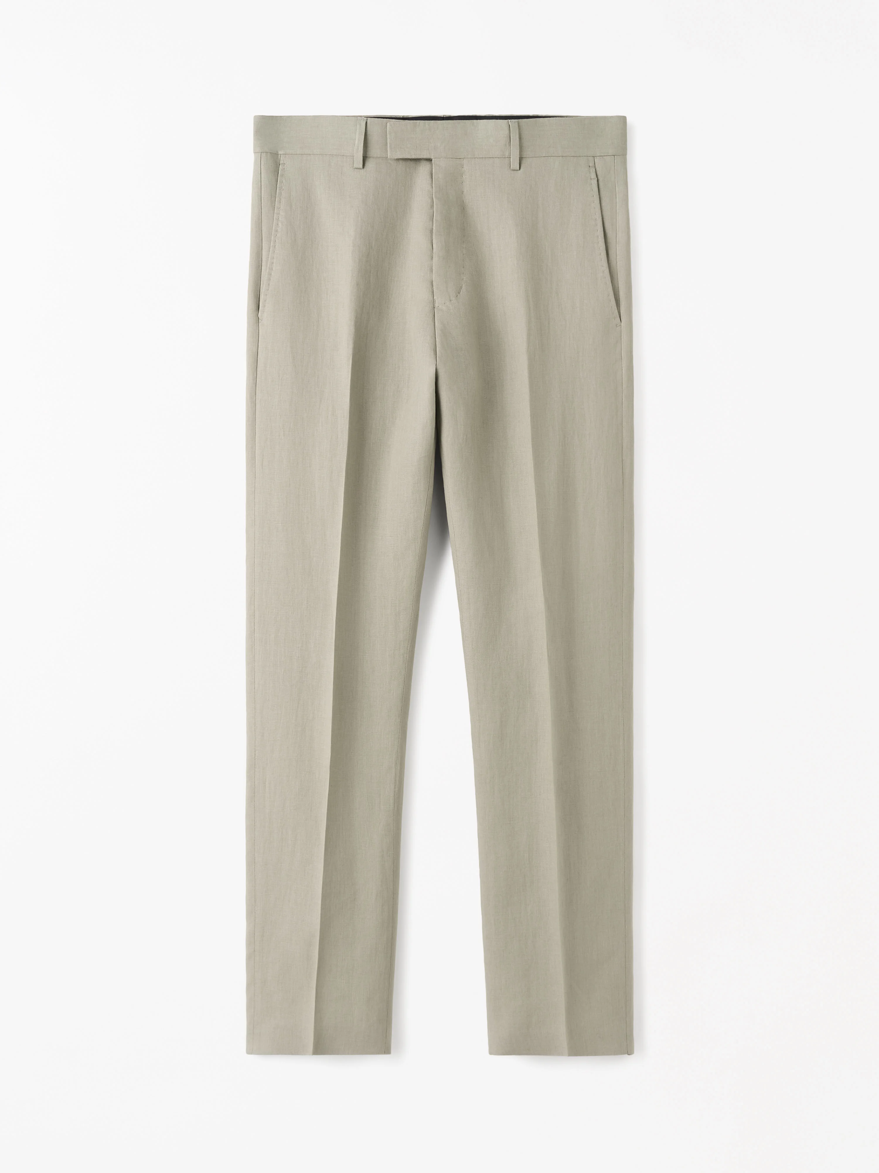 Tense is a tapered straight-leg trouser that adds a refined, modern edge to a classic suit. Constructed from 100% linen, it features AMF stitching along the fly and slanted side pockets. Product Details - 100% Linen - Tapered linen trousers - Mid-rise waist and slanted pockets - two back jet pockets, two side pockets - AMF stitching on fly and pockets - Made in Romania - For a complete look, wear it with Justin Jacket and Bjorn BD Shirt - Art No.11474803D
