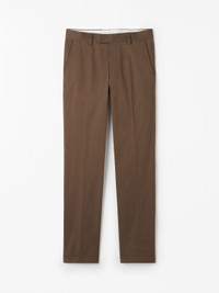 The Tenuta trousers feature a mid-rise and straight cut, providing a classic and comfortable fit. They are designed with slanted pockets at the front and jet pockets at the back, offering both style and functionality. The pants are unlined and include stitch details, along with a pressed crease at the front and back for a polished look. Product Details - 97% Cotton Organic, 3% Elastane - Mid-rise and slim leg - Slanted pockets at front - Jet pockets at back - Unlined - Stitch details, pressed crease at front and back - Made in Romania - Model is 184 cm and wearing a size 48 - Art No.11289812J