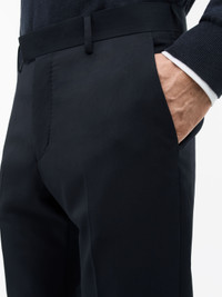 Tenuta is our new slim fit design crafted for a perfect blend of style and comfort. These trousers feature a stretchy plain weave made from 100% wool, sourced from the renowned Italian mill Marzotto. With a mid-rise and slim leg, they offer a modern, flattering look. Expertly made in Romania, Tenuta brings you the best of our refined fits for an exceptional wearing experience. Product Details - 100% Wool - Regular Straight Fit - Slim-fit trousers with slim leg - Mid rise - 100% wool by Italian mill Marzotto - Plain weaved - Made in Romania - Model is 187 cm and wearing a size 48 - Art No.11101709C