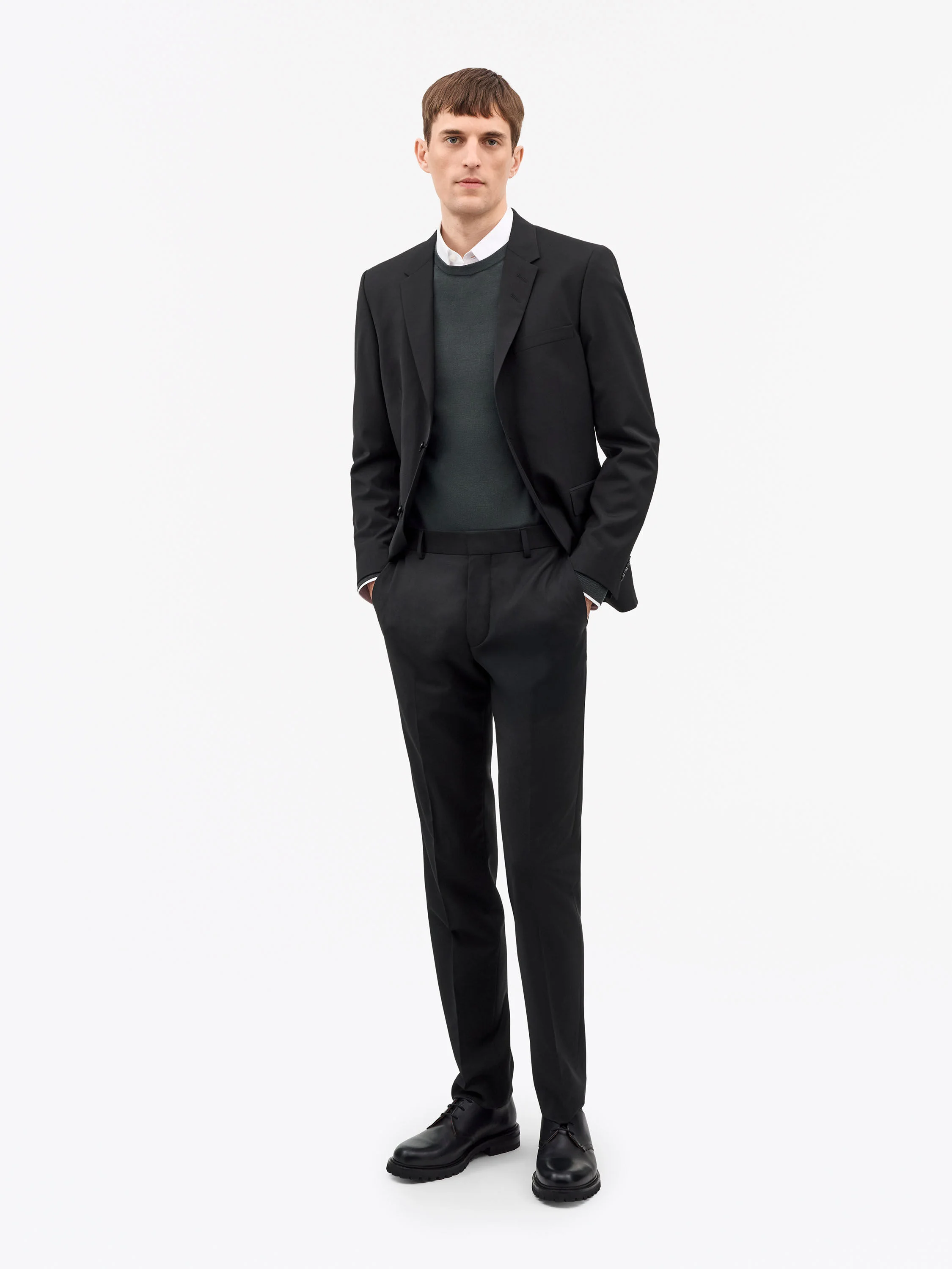 Product Details - 54% Polyester Recycled, 44% Wool, 2% Elastane - Regular Straight Fit - Slim-fit trousers with a slim leg - Mid-rise - Recycled wool-polyester blend with plain weave - Made in Bulgaria - Art No.109558050
