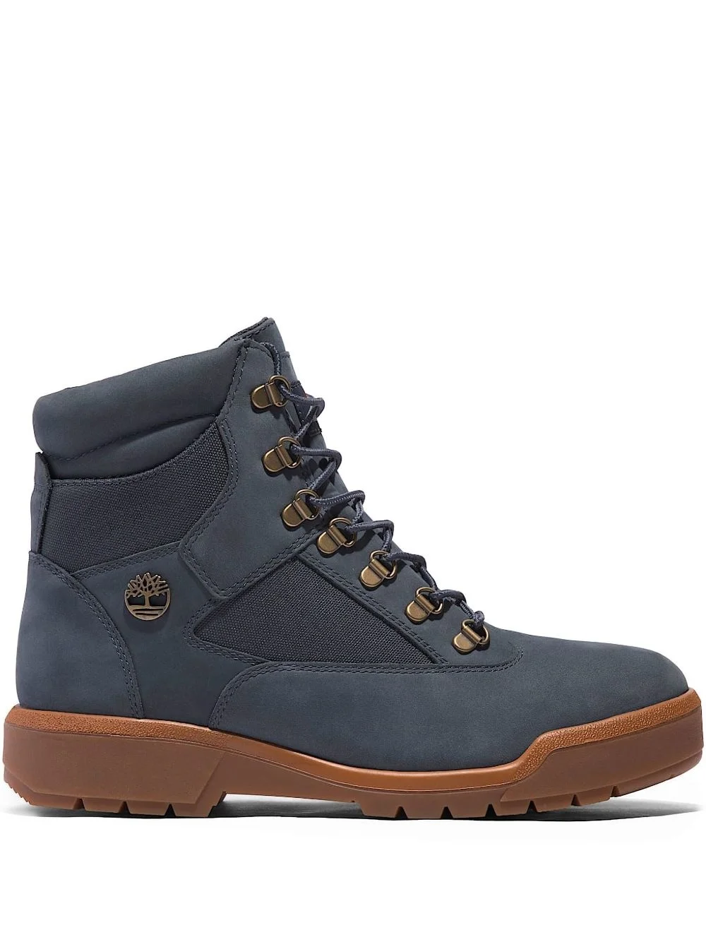 6 Inch Waterproof Field "Dark Blue Nubuck" boots Highlights - Midnight blue - Front lace-up fastening - Padded ankle - Round toe - Silver-tone logo plaque - Logo patch at the tongue - Chunky rubber sole Imported Composition Outer: Mesh 100%, Nubuck Leather 100%, Suede 100% Lining: Fabric 100% Sole: Rubber 100%