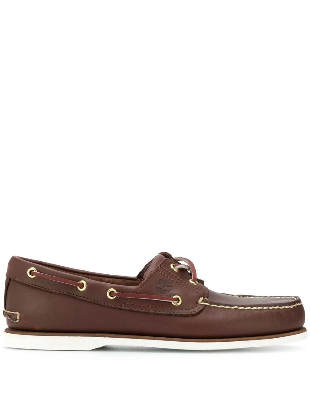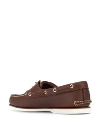 classic boat shoes Brown leather and rubber classic boat shoes from Timberland featuring a round toe, a lace-up front fastening, a branded insole, a flat sole and an embossed logo to the side . Imported Composition Sole: Rubber 100% Lining: Calf Leather 100% Outer: Calf Leather 100%