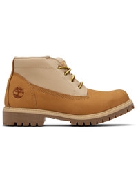Ankle-high nubuck and canvas boots. · Waterproof · Lace-up closure · Logo patch at padded tongue · Padded collar · Logo embossed at outer side · Removable anti-fatigue footbed · ReBOTL™ canvas lining · Topstitching at welt · Lugged rubber sole Supplier color: Wheat nubuck Upper: leather, textile. Sole: rubber. Made in Viet Nam 252210M255016