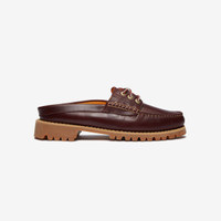 Timberland breathes fresh life into one of its true classics by remixing its iconic Boat Shoe into a Mule, offering a bold blend of comfort and style without compromising its legendary design. Made from Premium Timberland® Leather, this easy slip-on style features raised stitching at the front, metal eyelets, and a slightly padded collar, while the durable Vibram sole offers complete comfort and traction for your daily travels. - Timberland Mule - Upper made with Premium Timberland® Leather - ReBOTL™ fabric lining containing 50% recycled PET plastic - OrthoLite® footbed - Convenient slip-on style - Rubber lug outsole Article no: TB0A6ETDEIW Gender: Unisex Color: BURGUNDY FULL GRAIN