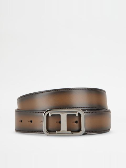 Reversible belt in calfskin leather featuring a rectangular buckle with branded metal T Timeless accessory. A versatile accessory to complement your everyday look. Adjustable length: to get a custom fit, you can cut the belt rod, or add any holes. - Made in Italy - Men's Tod's Reversible Belt - Item crafted in calfskin leather - Branded metal T Timeless rectangular buckle - Width: 1.4 ins - Maintenance and care cards included - Branded dustbag