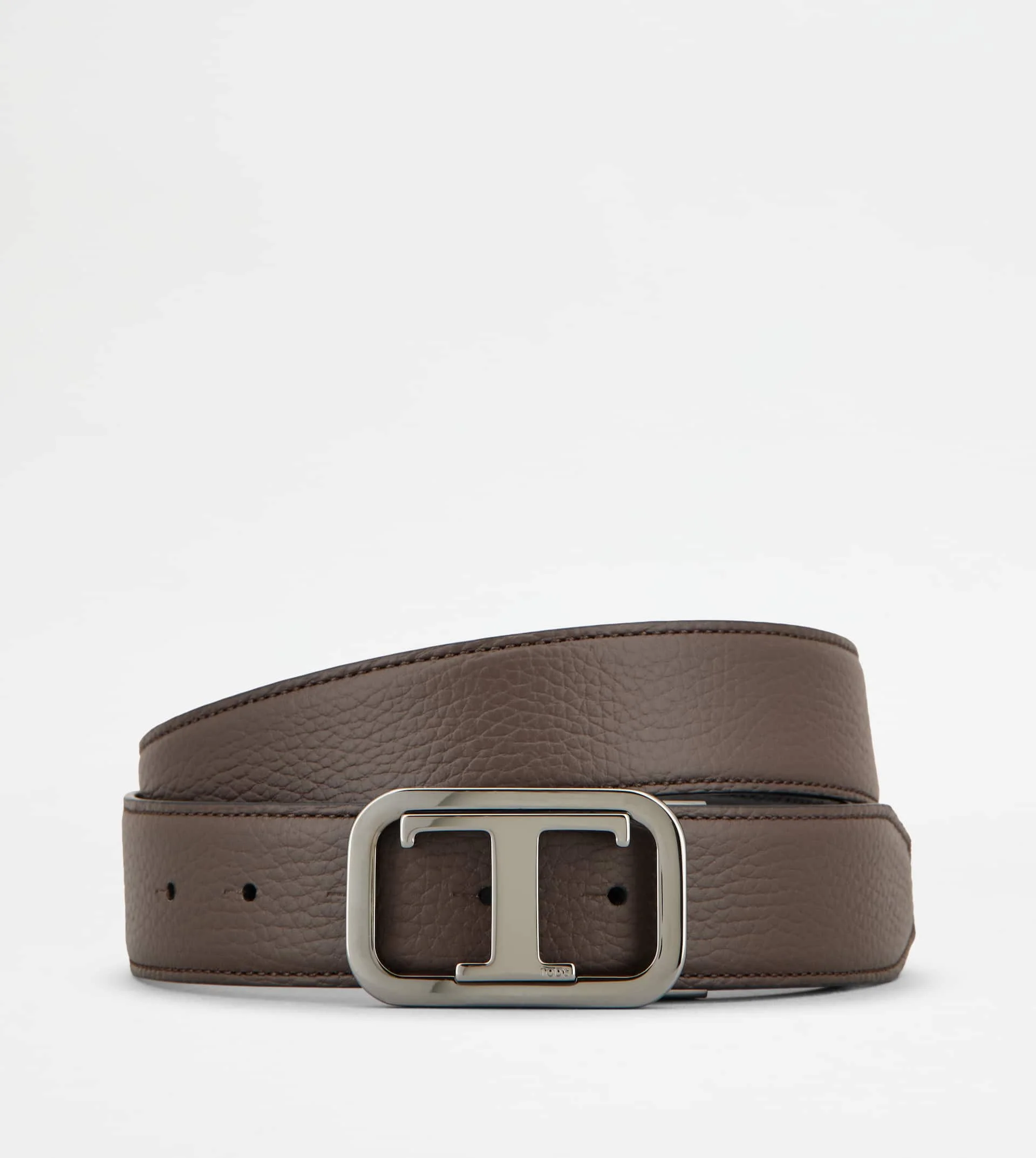 Reversible belt in calfskin leather featuring a rectangular buckle with branded metal T Timeless accessory. A versatile accessory to complement your everyday look. Adjustable length: for a tailored fit, it is possible to cut the belt rod or add holes. - Made in Italy - Men's Tod's Reversible Belt - Item crafted in calfskin leather - Branded metal T Timeless rectangular buckle - Width: 1.4 ins - Maintenance and care cards included - Branded dustbag