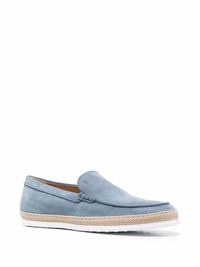 almond-toe suede loafers light blue suede/leather almond toe tonal stitching branded insole contrasting trim flat rubber sole Made in Italy Composition Lining: Leather 100% Outer: Suede 100% Sole: Rubber 100% SIZE & FIT Measurement HEEL 0.98 in(2.5 cm) Sole height 0.78 in(2 cm)