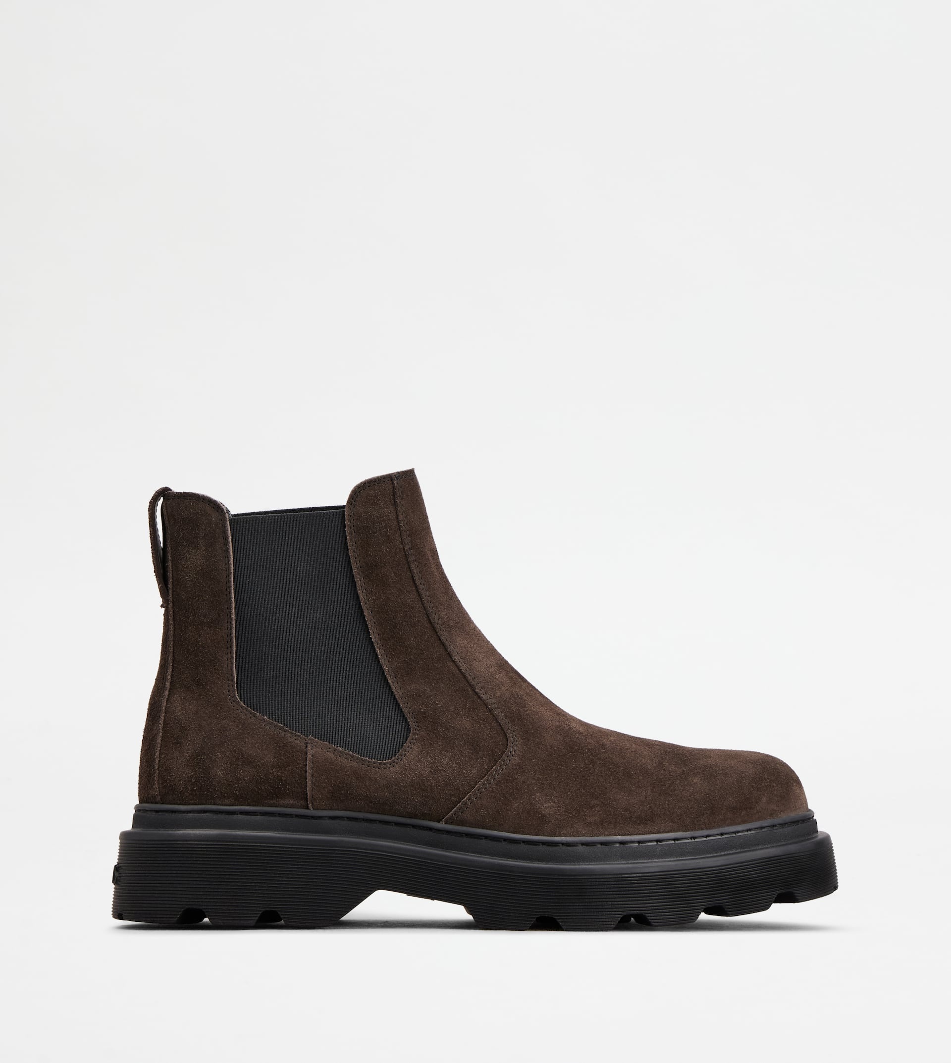 Ankle boots in calfskin suede with side elastic inserts and lugged rubber outsole. A model that combines urban style trends and handcrafted detailing. - Made in Italy - Men's Ankle Boots in Leather - Calfskin suede upper - Side elastic inserts - Leather insole - Rubber outsole - Maintenance and care cards included - Branded dustbag