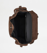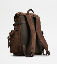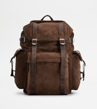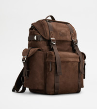 Backpack in calfskin suede, with handle strap and adjustable shoulder straps. Closed with flap and branded metal buckles, it features a flat upper pocket and wide zipped front pocket. The sides come with practical flap pockets, while the interior features a drawstring with branded slider. - Dimensions: L 14.6 ins x H 15.4 ins x D 8.3 ins - Handle: height (drop) 2.8 ins - Adjustable shoulder straps - Made in Italy - Backpack in suede - Item crafted in calfskin suede - Fabric detailing - Tod's logo stamped on the front - Flat zipped upper pocket - Zipped front pocket - 2 side pockets with flap and metal buckle - Flap, metal buckle and drawstring closure - Fabric lining - Zipped internal pocket - Maintenance and care cards included - Branded dustbag