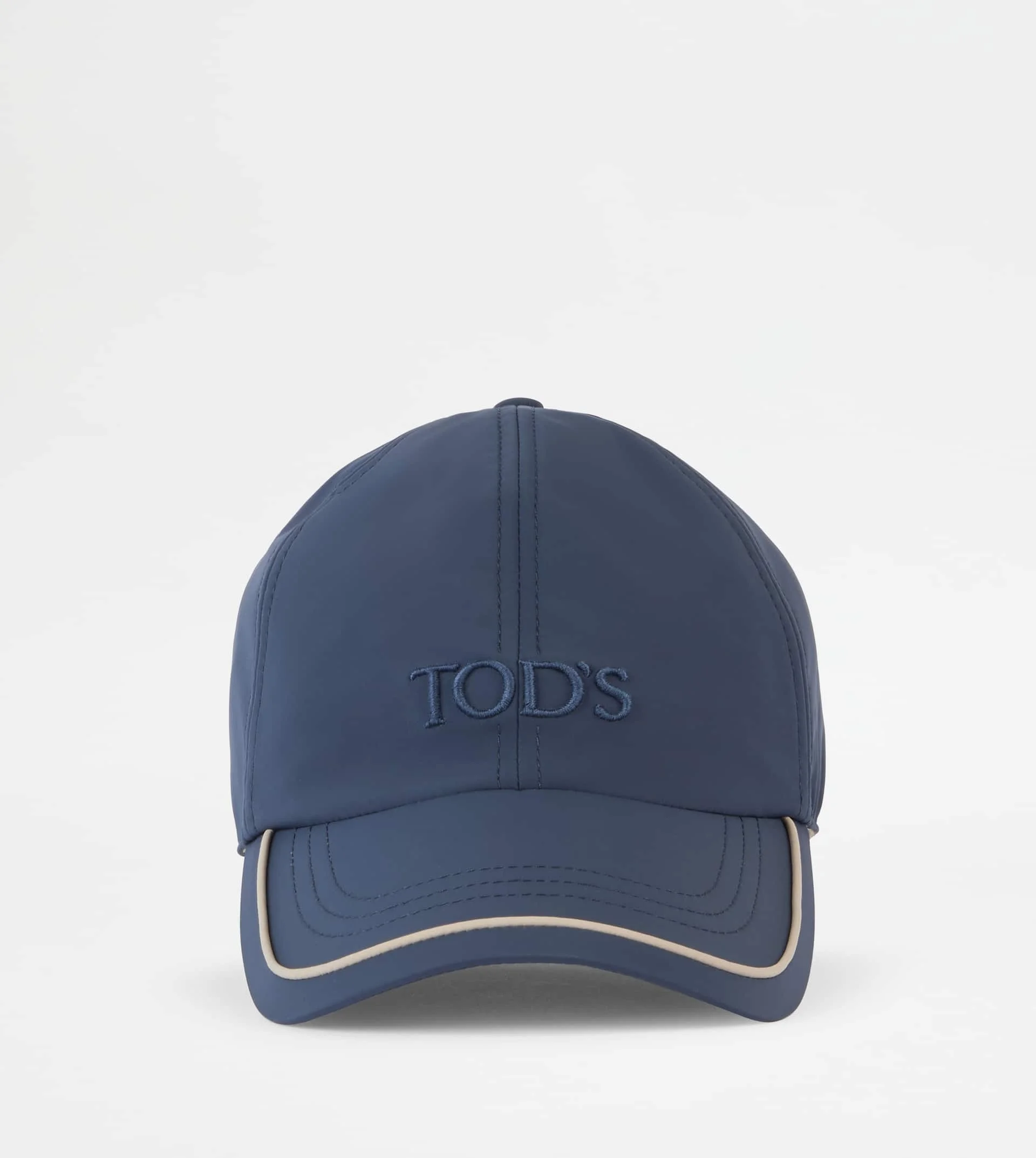 Baseball cap with embroidered Tod' logo, crafted in stretch fabric with water-repellent, windproof and breathable membrane. Perfect to complement a refined urban look, it is adjustable with a leather strap on the back. - Made in Italy - Baseball cap - Item composition: 64% polyamide, 21% polyurethane, 15% elastane, leather detailing - Lining: 100% cotton - Maintenance and care cards included