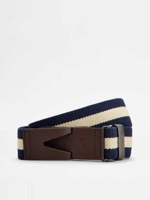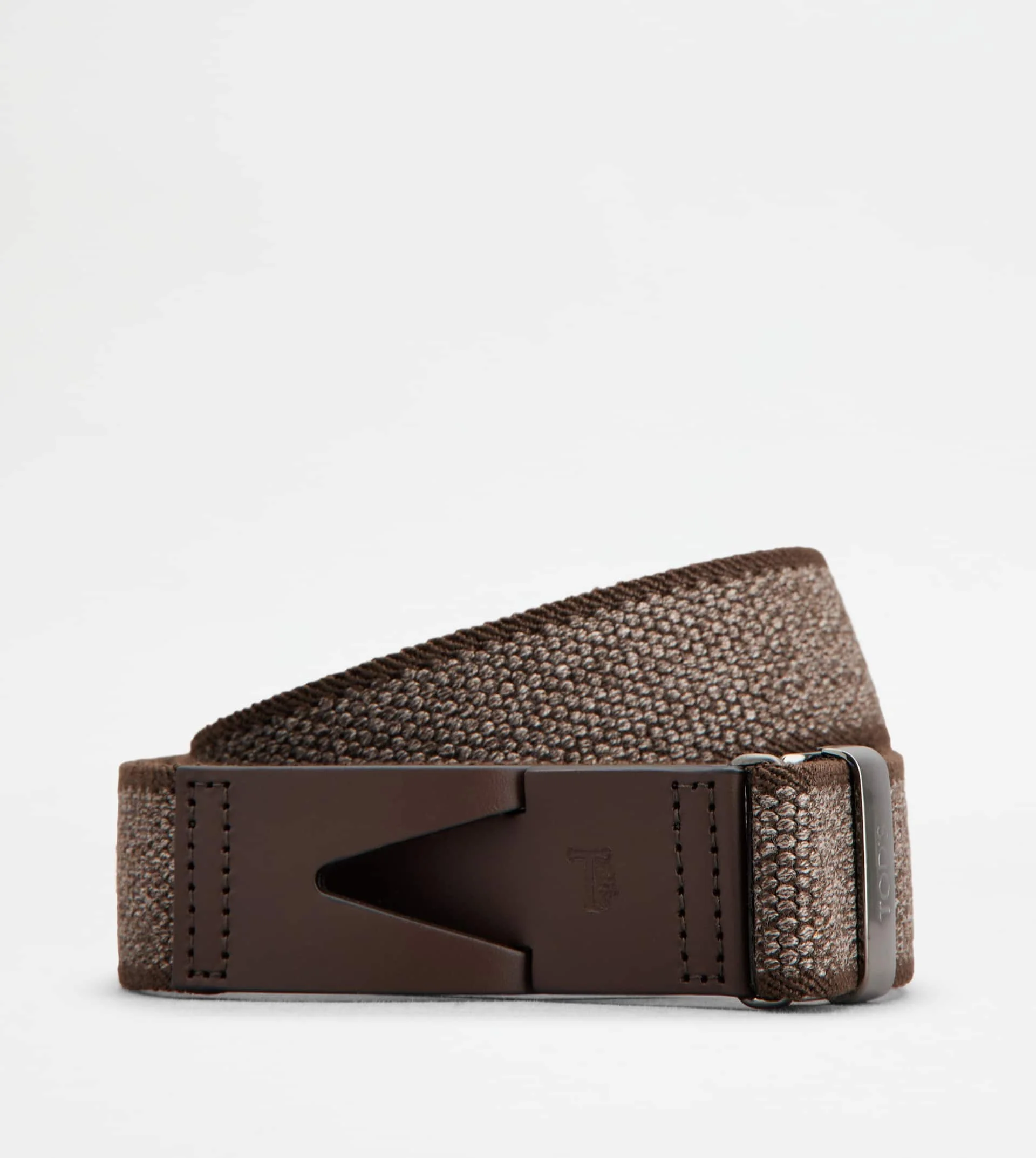 Tod's Greca Belt, adjustable belt in strong canvas with the distinctive leather snap buckle, stamped monogram and branded metal loop. - Made in Italy - Men's Belts - Item crafted in fabric - Leather snap buckle - Stamped Tod's monogram - Branded metal loop - Belt width: 1.4 ins - Maintenance and care cards included - Branded dustbag