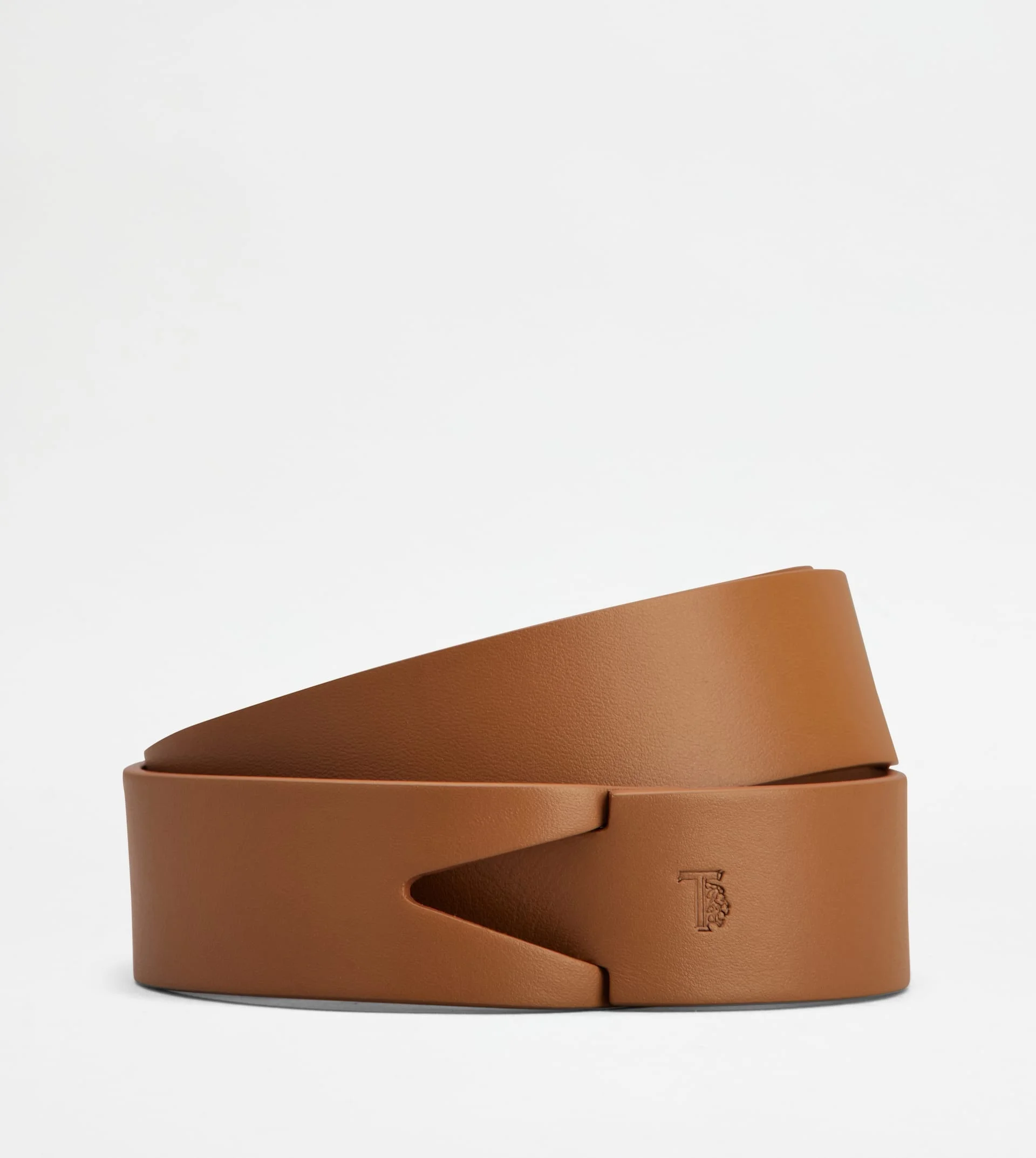 Tod's Greca Belt, adjustable belt in leather with distinctive interlocking buckle, stamped monogram and branded metal detailing. - Made in Italy - Tod's belt - Item crafted in calfskin leather - Interlocking buckle - Stamped Tod's monogram - Engraved Tod's logo - Satin metal detailing - Belt width: 1.4 ins - Maintenance and care cards included - Branded dustbag