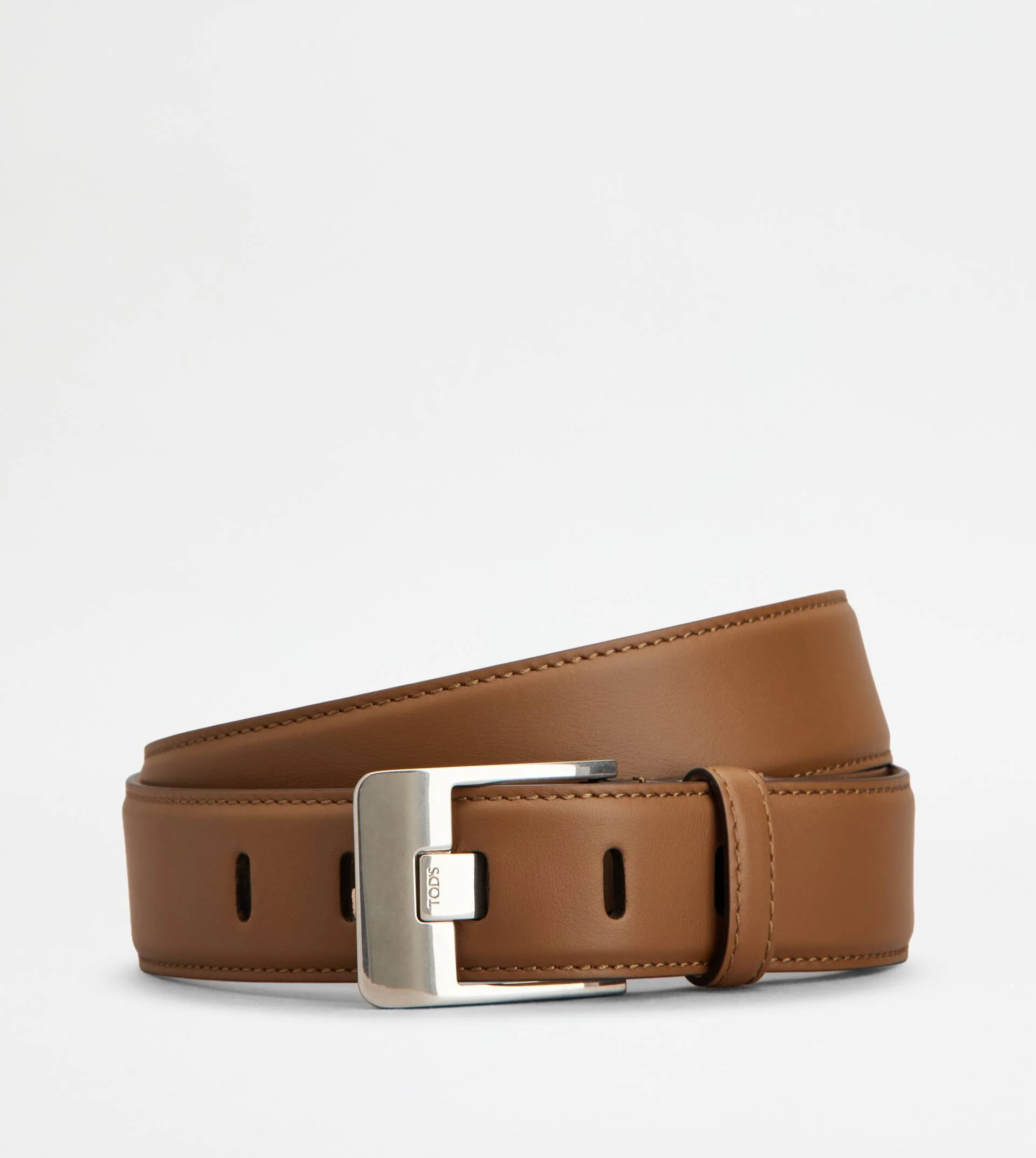 Belt in soft leather, with metal buckle characterized by a maxi branded tongue. A versatile accessory, perfect for an informal elegance. - Made in Italy - Belt in leather - Item crafted in calfskin leather - Branded metal buckle - Belt width: 1.4 ins - Maintenance and care cards included - Branded dustbag