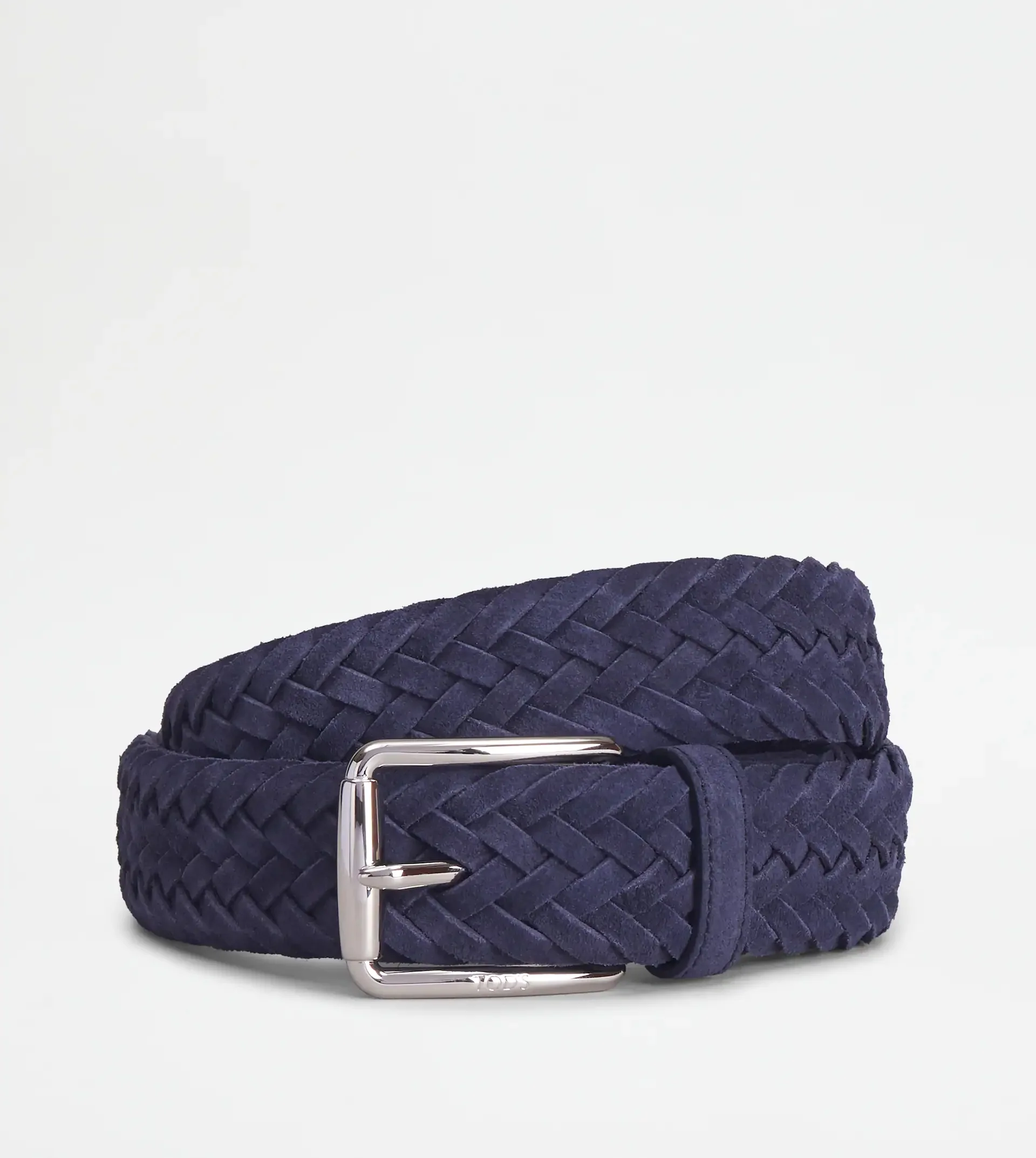 Belt in woven suede with branded metal buckle. - Made in Italy - Men's Tod's Belt - Item crafted in suede - Branded metal buckle - Technical fabric interior - Belt width: 1.4 ins - Maintenance and care cards included - Branded dustbag