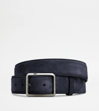 Artisanal taste and informal elegance coexist in this refined men's belt, crafted in calfskin suede. Featuring a branded metal tongue buckle, it enriches your look with style. - Made in Italy - Men's belt - Item crafted in calfskin suede - Branded metal buckle - Belt width 1.4 ins - Maintenance and care cards included - Branded dustbag