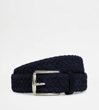 Belt in woven suede with branded metal buckle. - Made in Italy - Men's Tod's Belt - Item crafted in suede - Branded metal buckle - Technical fabric interior - Belt width: 1.4 ins - Maintenance and care cards included - Branded dustbag