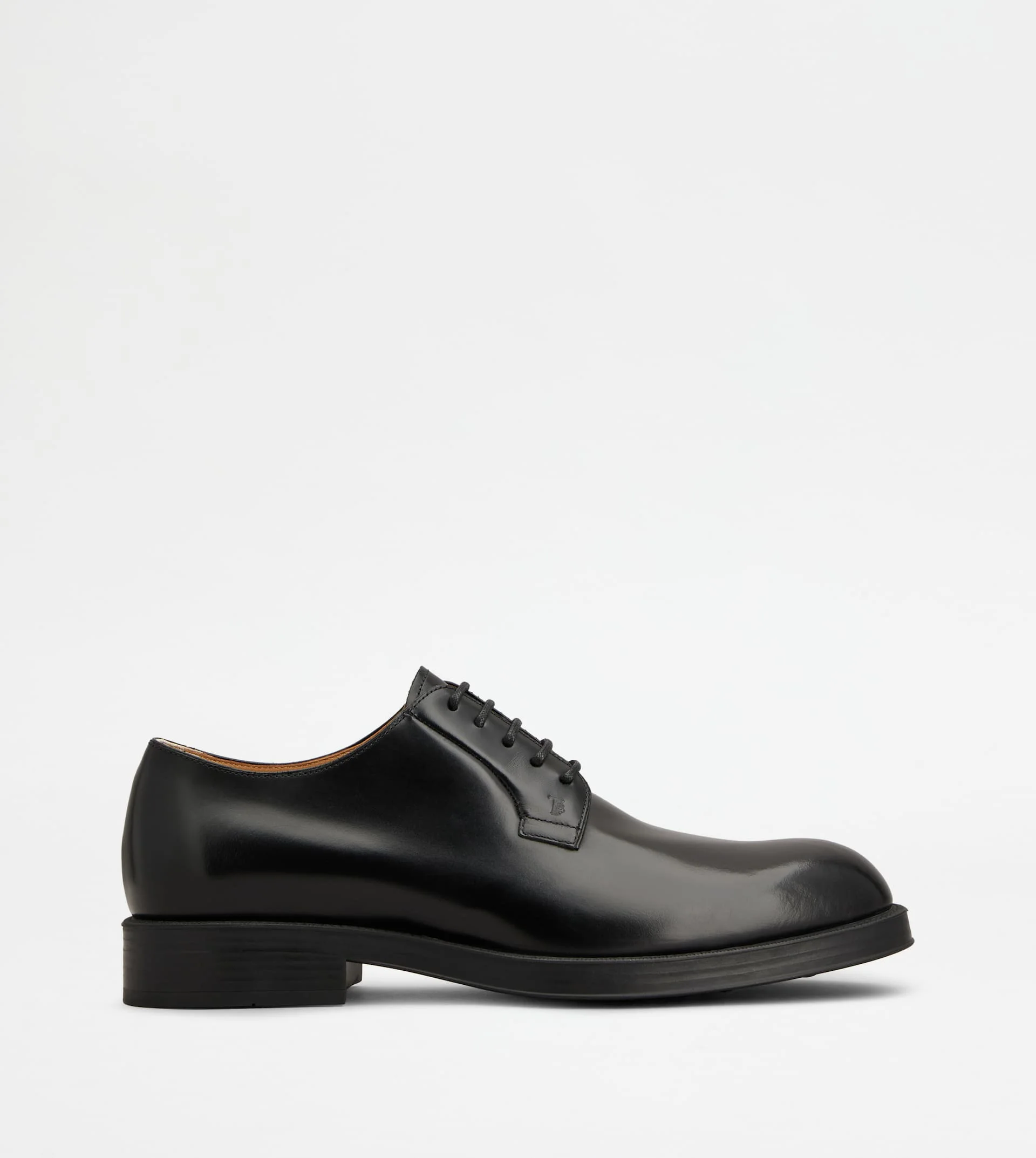 Lace-ups in refined calfskin leather. Featuring stamped Tod's monogram, this elegant style comes with rubber outsole with embossed rubber pebbles. - Made in Italy - Men's lace-ups - Calfskin leather upper - Semi-shiny finishing - Stamped Tod's monogram - Leather lining and insole - Rubber outsole with embossed rubber pebbles - Maintenance and care cards included - Branded dustbag
