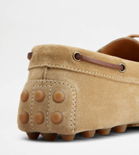 The Gommino Bubble style emphasizes the iconic rubber pebble feature in a contemporary key. Result of a careful craftsmanship, they come here in a boat lace-up version. Crafted in refined calfskin suede, they come with maxi rubber pebbles on the outsole and heel. - Made in Italy - Men's Boat Gommino - Calfskin suede upper - Stamped Tod's monogram - Leather woven ties - Leather insole - Rubber pebble detailing on the heel - Iconic rubber pebble outsole - Maintenance and care cards included - Branded dustbag