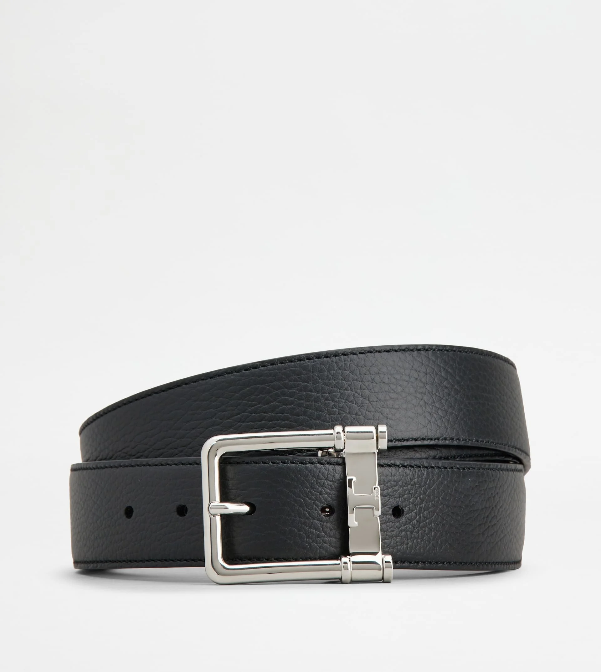 Elegant box composed of a reversible belt crafted in smooth leather on one side and exposed grain leather on the other, with a double buckle. The two interchangeable buckles are crafted in metal, one rectangular buckle with a T Timeless accessory and one tongue buckle with branded metal mini Tod's monogram. - Made in Italy - Men's Tod's Box with Reversible Belt and Two Buckle - Item crafted in calfskin leather - Branded metal T Timeless buckle - Branded metal tongue buckle - Belt width: 1.4 ins - Maintenance and care cards included - Branded dustbag