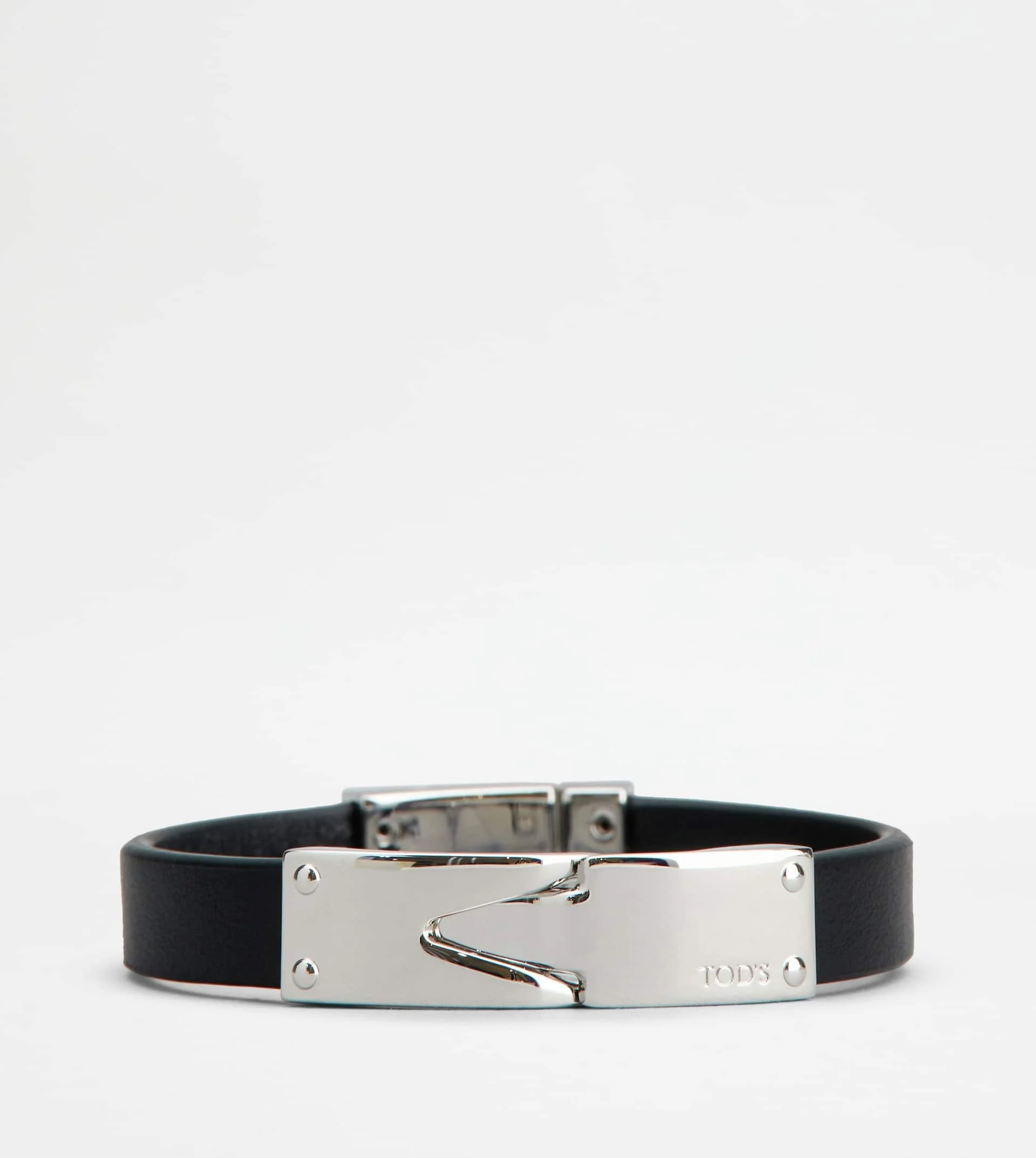 Bracelet in fine calfskin leather, with metal Greca insert and branded closure. A contemporary accessory suitable for any look. - Made in Italy - Bracelet in leather - Item crafted in calfskin leather - Metal inserts and closure - Length 8 ins, width 0.4 ins - Maintenance and care cards included