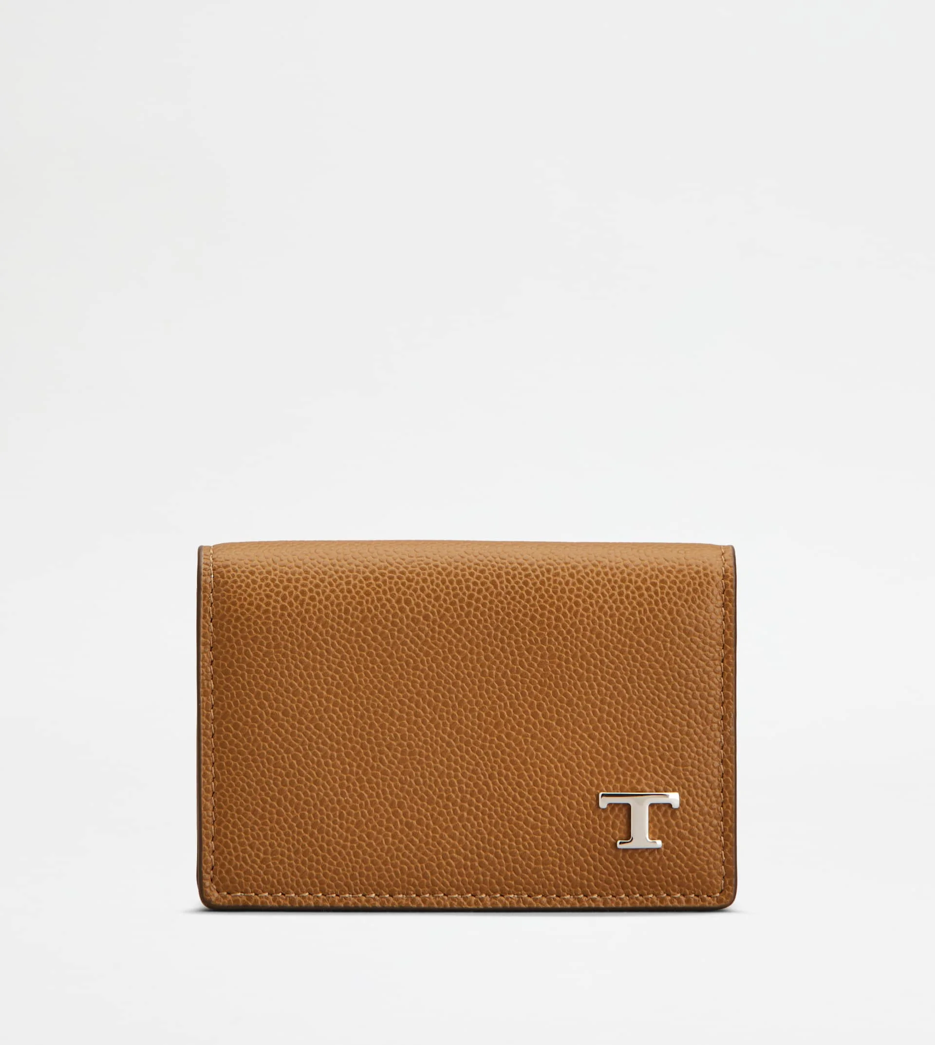 Business card holder in calfskin leather with metal T Timeless logo. A refined accessory with timeless taste. - Dimensions: L 4.3 ins x H 2.9 ins x D 1 in - Made in Italy - Business card holder in leather - Item crafted in calfskin leather - Metal T Timeless logo on the front - 1 central compartment - 2 flat pockets - Maintenance and care cards included