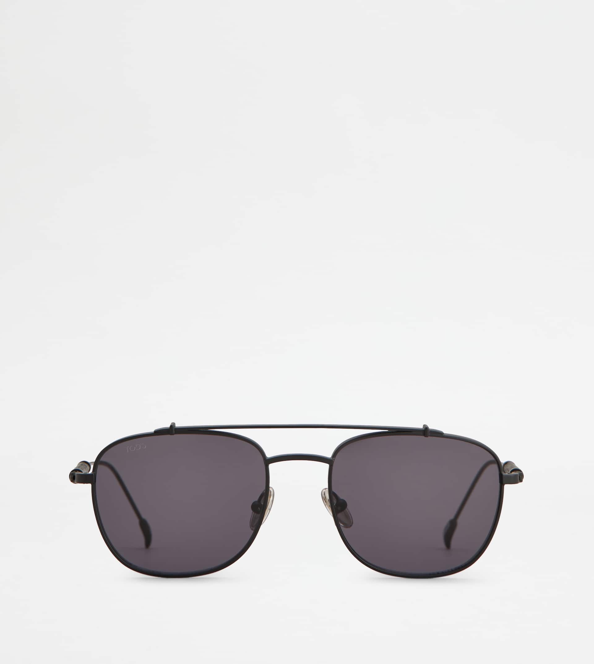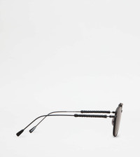 Caravan-shaped sunglasses, crafted in ultralight metal. Characterized by the iconic leather weaving on the branded temples, they come with a sophisticated and elegant design. - Made in Italy - Men's Tod's Sunglasses - Galvanized metal frame - Painted metal and leather temples - Dimensions: lens width 2.1 ins, nose bridge 0.7 ins, temple length 5.7 ins - UVA/UVB protection - Compliant with EN ISO 12312-1 standard - Branded case