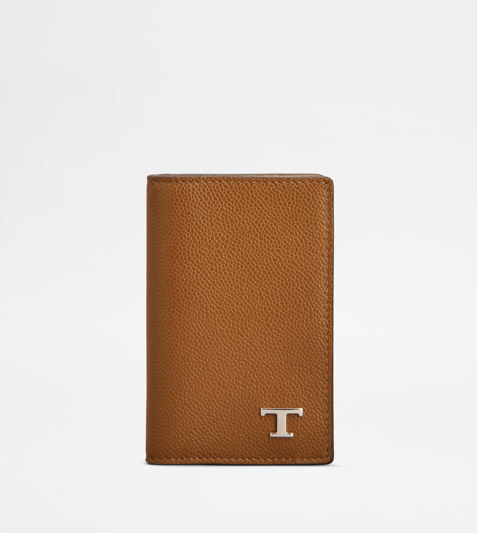 Credit card holder in calfskin leather with metal T Timeless logo. A refined accessory with timeless style. - Dimensions: L 3 ins x H 4.3 ins x D 0.4 ins - Made in Italy - Card holder in leather - Item crafted in calfskin leather - Metal T Timeless logo on the front - 3 pockets - 3 cardslots - Maintenance and care cards included