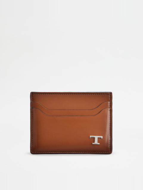 CARD HOLDER IN LEATHER - BROWN, BEIGE