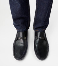 City Gommino driving shoes in textured leather with branded metal Tod's accessory. Exposed handmade stitching, rubber outsole and heel with iconic embossed rubber pebbles. A sober and versatile style that renews the synthesis of informal elegance and sophisticated urban taste. - Made in Italy - Men's Tod's City Gommino Driving Shoes - Leather upper - Textured finish - Branded metal Tod's accessory - Exposed handmade stitching - Rubber pebble detailing on the heel - Rubber outsole with embossed rubber pebbles - Maintenance and care cards included - Branded dustbag
