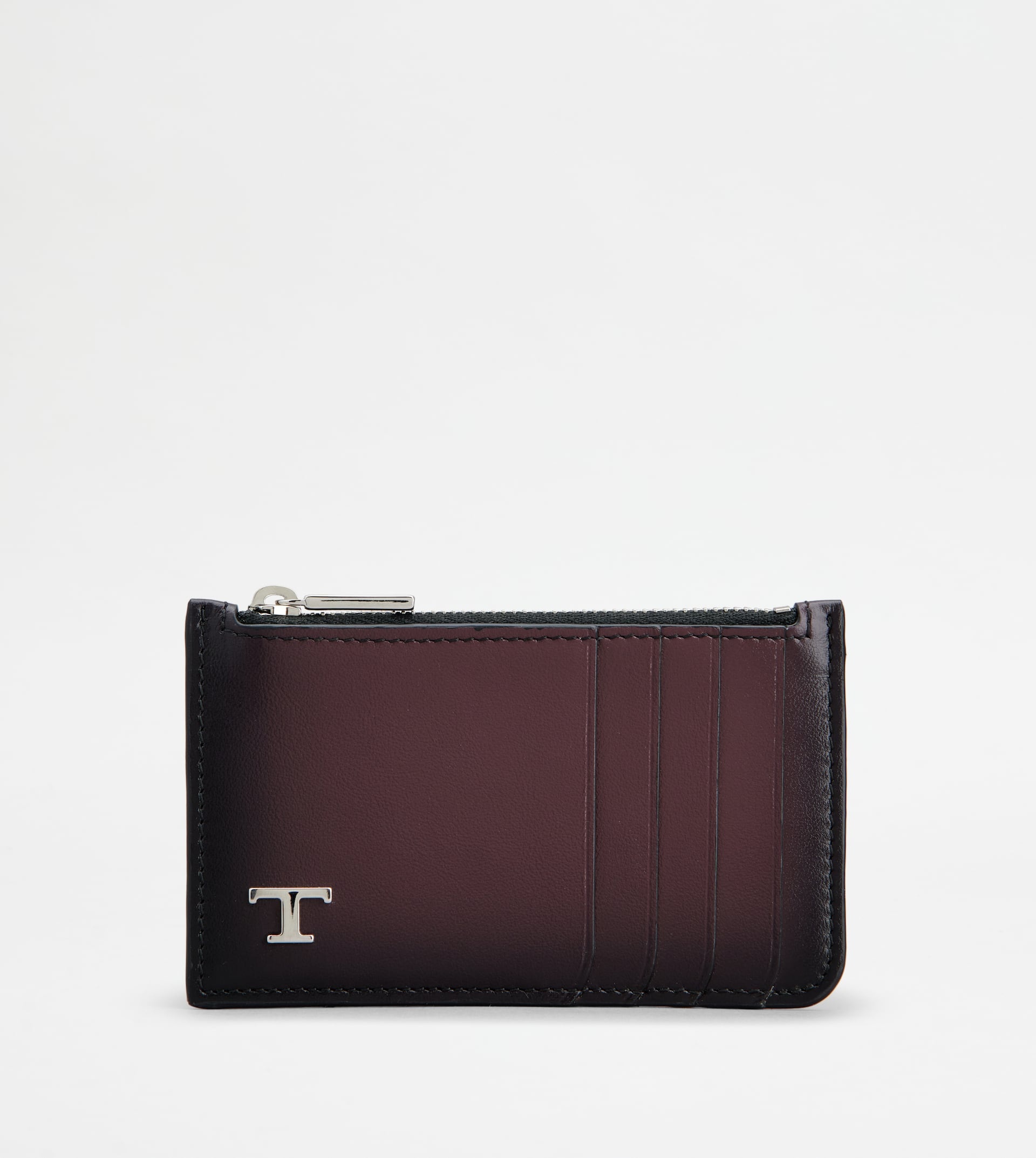 Card holder in leather with light shaded effect, metal T Timeless logo and zip closure. A refined accessory with timeless taste. - Dimensions: L 5.1 ins x H 3 ins x D 0.6 ins - Made in Italy - Men's card holder - Item crafted in leather - Metal T Timeless logo - Zip closure - 4 cardslots on the front - 4 cardslots on the back - Maintenance and care cards included