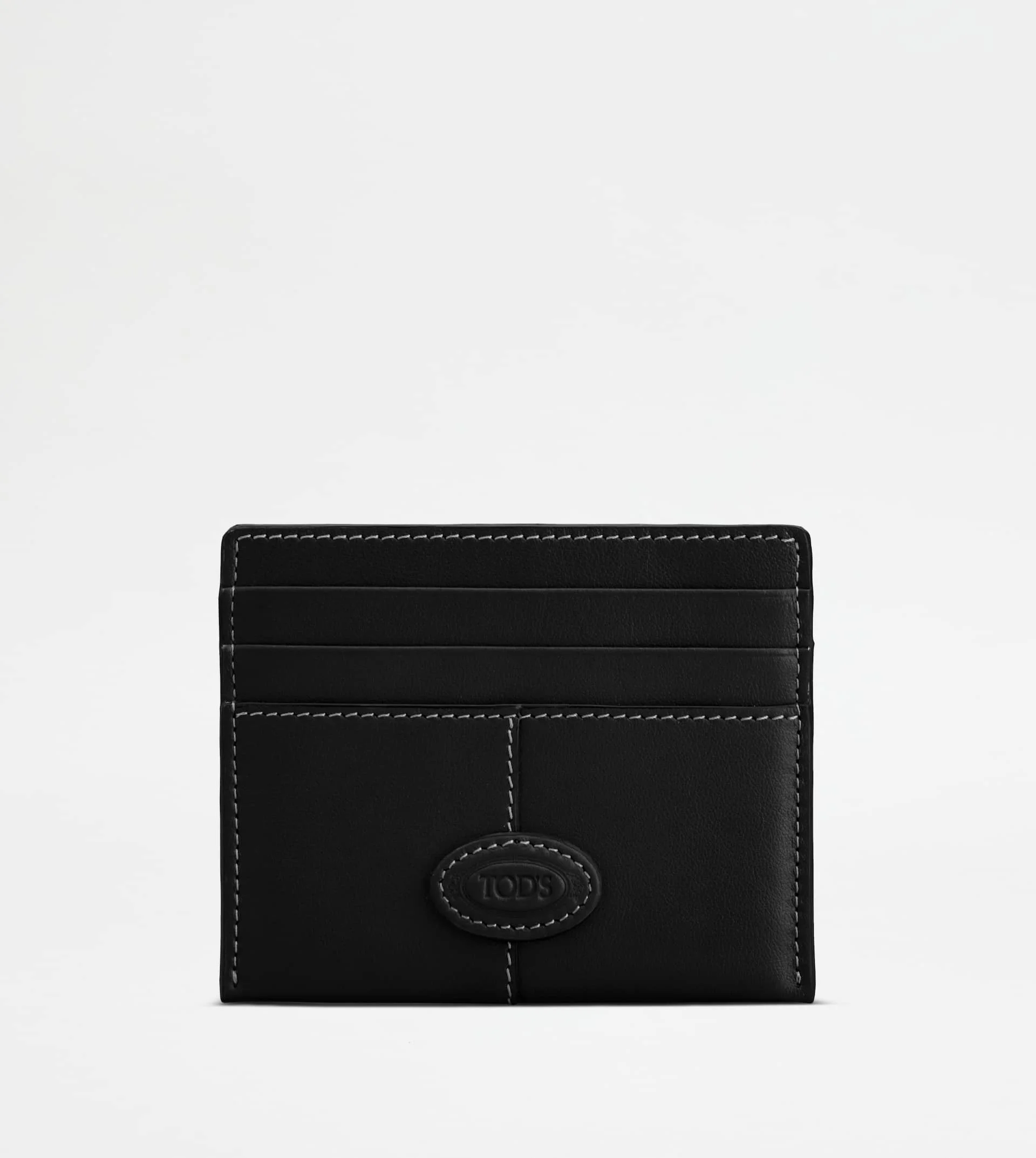 Credit card holder in calfskin leather, with iconic central stitching and Tod's logo stamped on the front. - Dimensions: L 4.1 ins x H 3.3 ins x D 0.2 ins - Made in Italy - Card holder in leather - Item crafted in calfskin leather - Tod's logo stamped on the front - 3 flat pockets on the front - 3 flat pockets on the back - Maintenance and care cards included