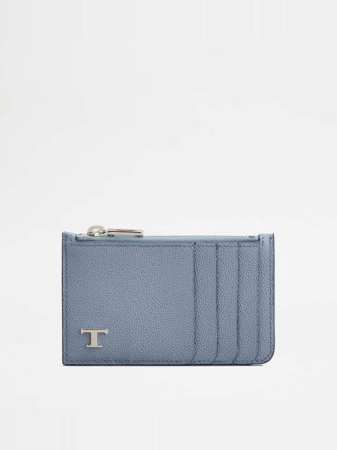 Card holder in calfskin leather, with metal T Timeless logo and zip closure. A refined accessory with timeless style. - Dimensions: L 5.1 ins x H 3.1 ins x D 0.6 ins - Made in Italy - Card holder in leather - Item crafted in calfskin leather - Metal T Timeless logo - Zip closure - 4 cardslots on the front - 4 cardslots on the back - Maintenance and care cards included