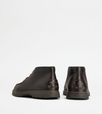 Desert boots in soft natural-grained deerskin leather. Characterized by elastic drawstring with branded metal slider, they feature a rubber outsole with embossed rubber pebbles. An informal and versatile style, enriched by the distinctive rubber pebbles on the heel. - Made in Italy - Men's desert boots - Deerskin leather upper - Elastic drawstring with branded slider - Leather lining and insole - Rubber pebble detailing on the heel - Rubber outsole with grooving and embossed rubber pebbles - Maintenance and care cards included - Branded dustbag