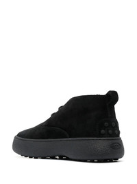 Desert suede boots Characterized by the chunky rubber sole these boots from Tod's arrive in a black suede construction. Featuring the iconic rubber pebbles on the bottom and heel, they are enhanced by Tod's monogram stamped on the front. Highlights - Black - Calf suede - Debossed logo to the side - Round toe - Front lace-up fastening - Chunky rubber sole - Signature gommino sole Made in Italy Composition Outer: Calf Suede 100% Sole: Rubber 100% Cotton 25% Lining: Polyester 75% SIZE & FIT Measurement HEEL 1.77 in(4.5 cm) Sole height 1.37 in(3.5 cm)